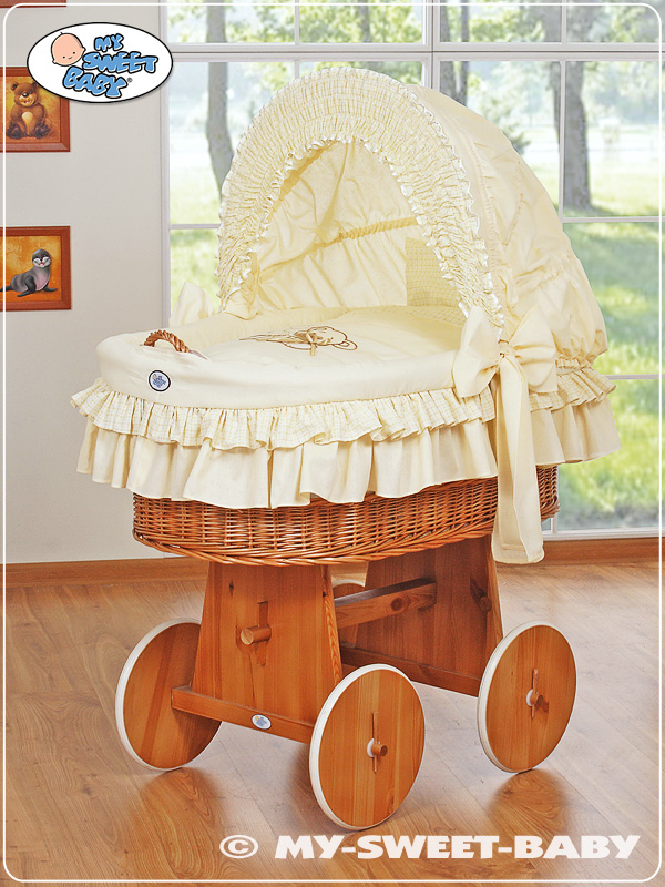 Hjemmeside » Kurvevugge » Flettet vugge med kaleche på hjul » Flettet vugge med kaleche på hjul » Moseskurv med kaleche Enfelben