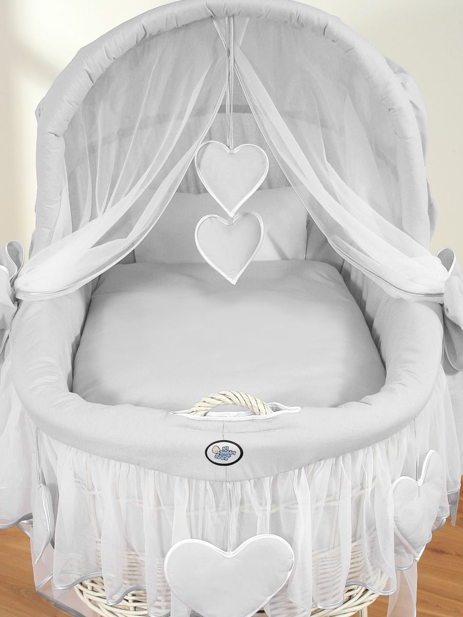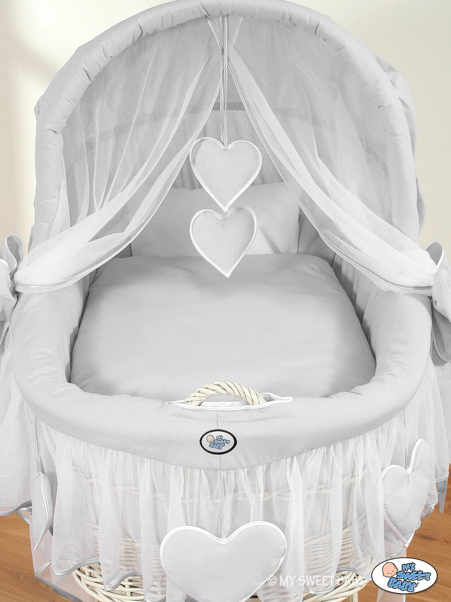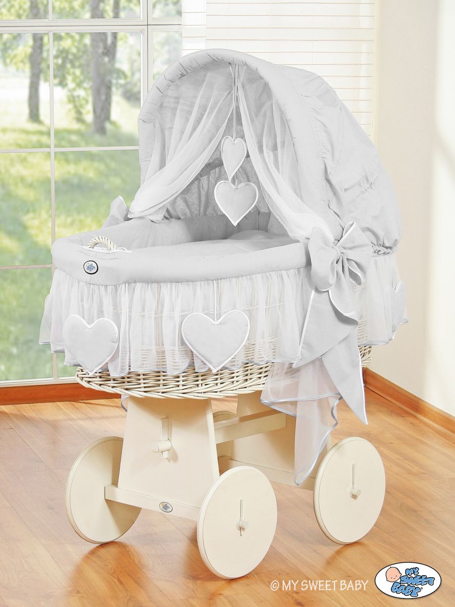 Hjemmeside » Kurvevugge » Flettet vugge med kaleche på hjul » Flettet vugge med kaleche på hjul » Moseskurv med kaleche Grå Amelie
