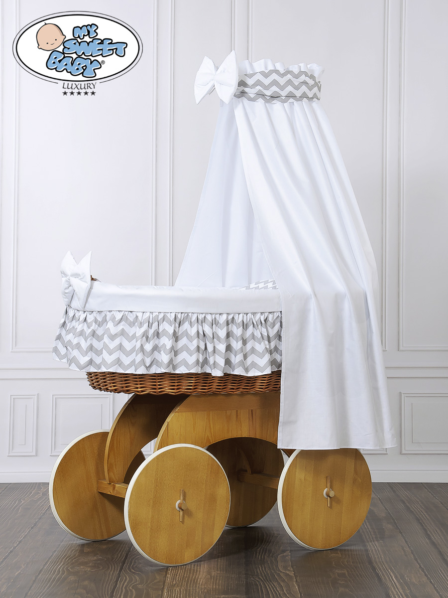 Hjemmeside » Kurvevugge » Babyvugge My Sweet Baby Luxury » Babyvugge med sengehimmel » Babyvugge med sengehimmel » Moseskurv til baby på hjul / Flettet kurv med sengehimmel Hannah