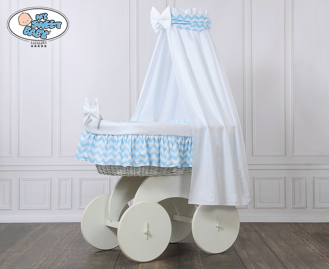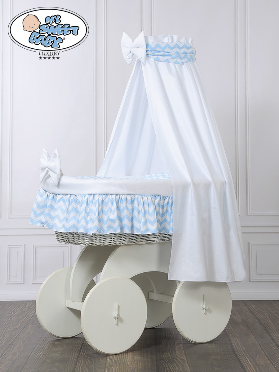 Hjemmeside » Kurvevugge » Babyvugge My Sweet Baby Luxury » Babyvugge med sengehimmel » Babyvugge med sengehimmel » Moseskurv til baby på hjul / Flettet kurv med sengehimmel Hannah