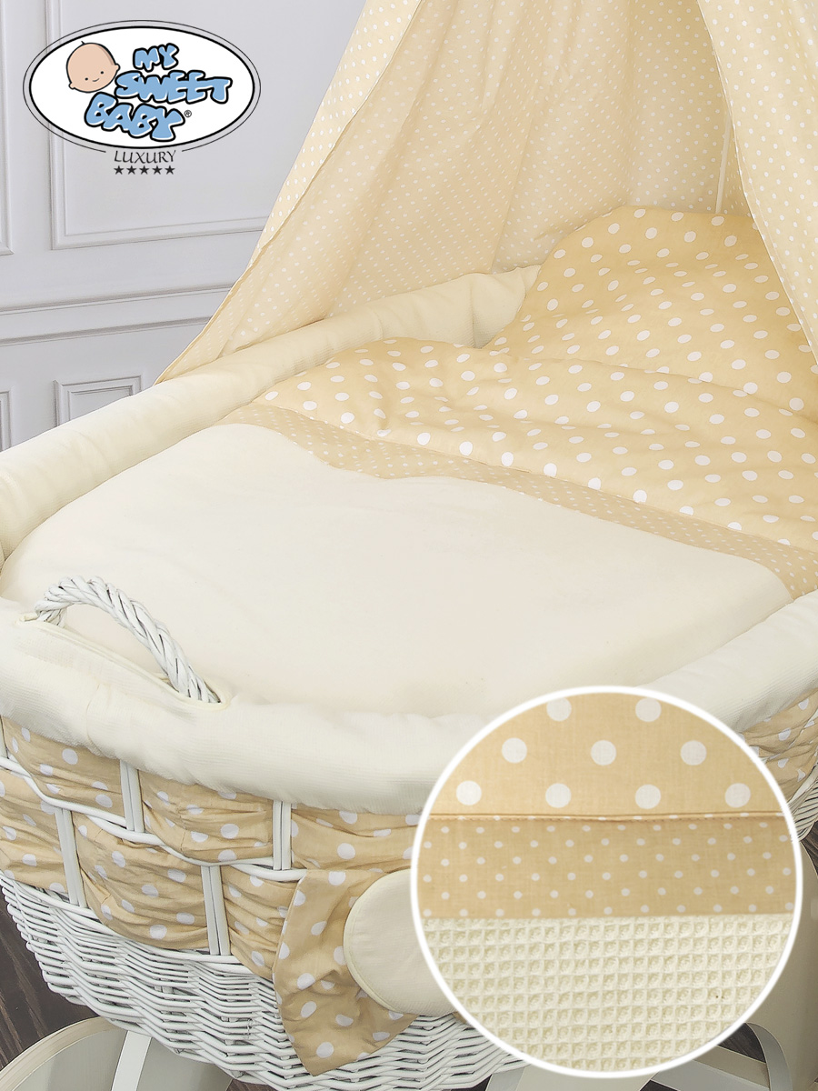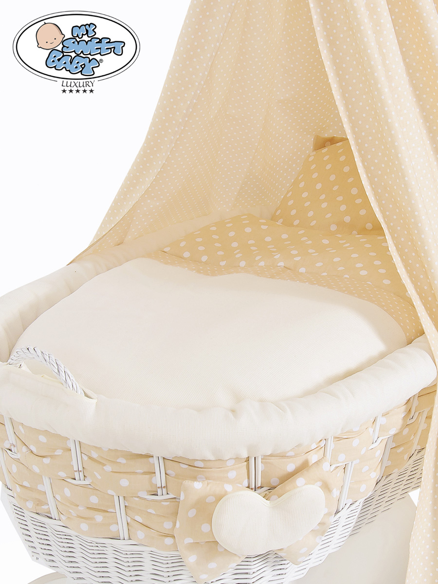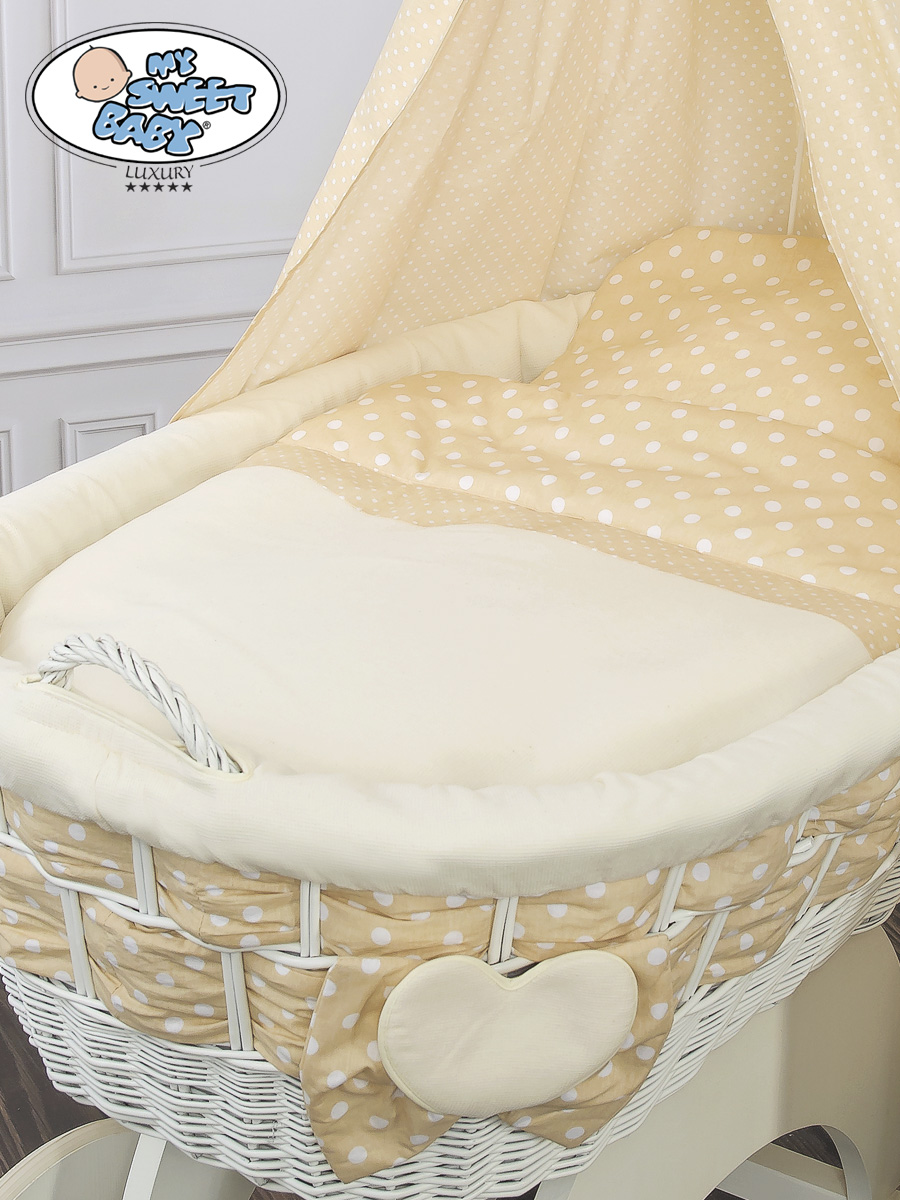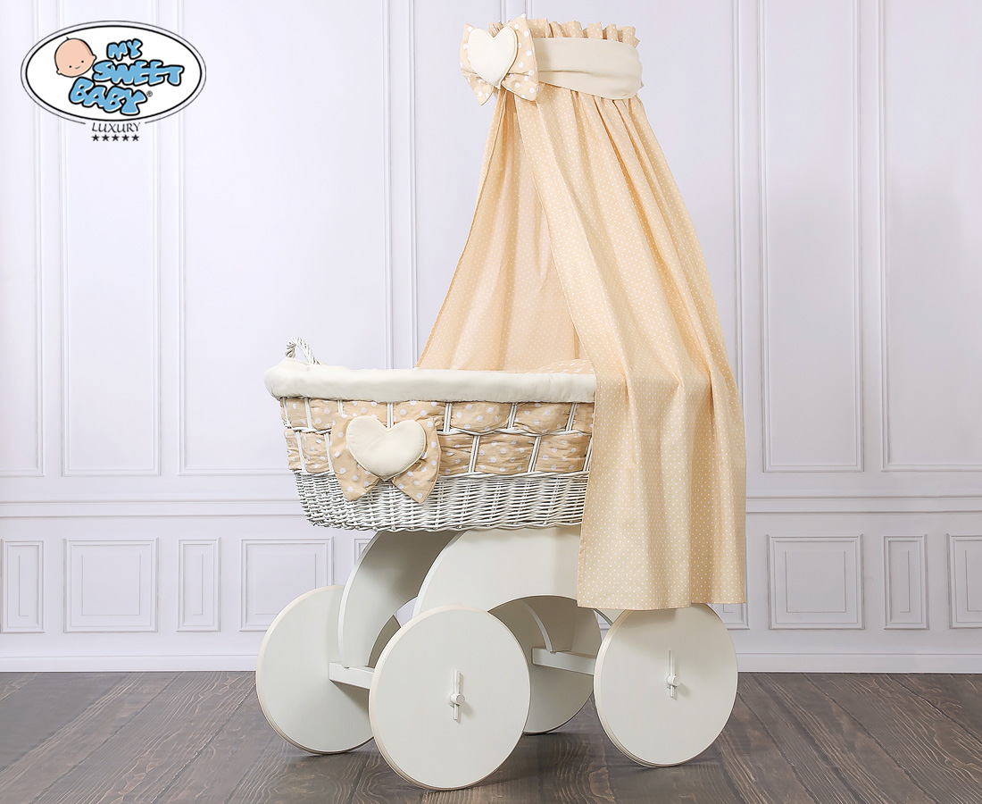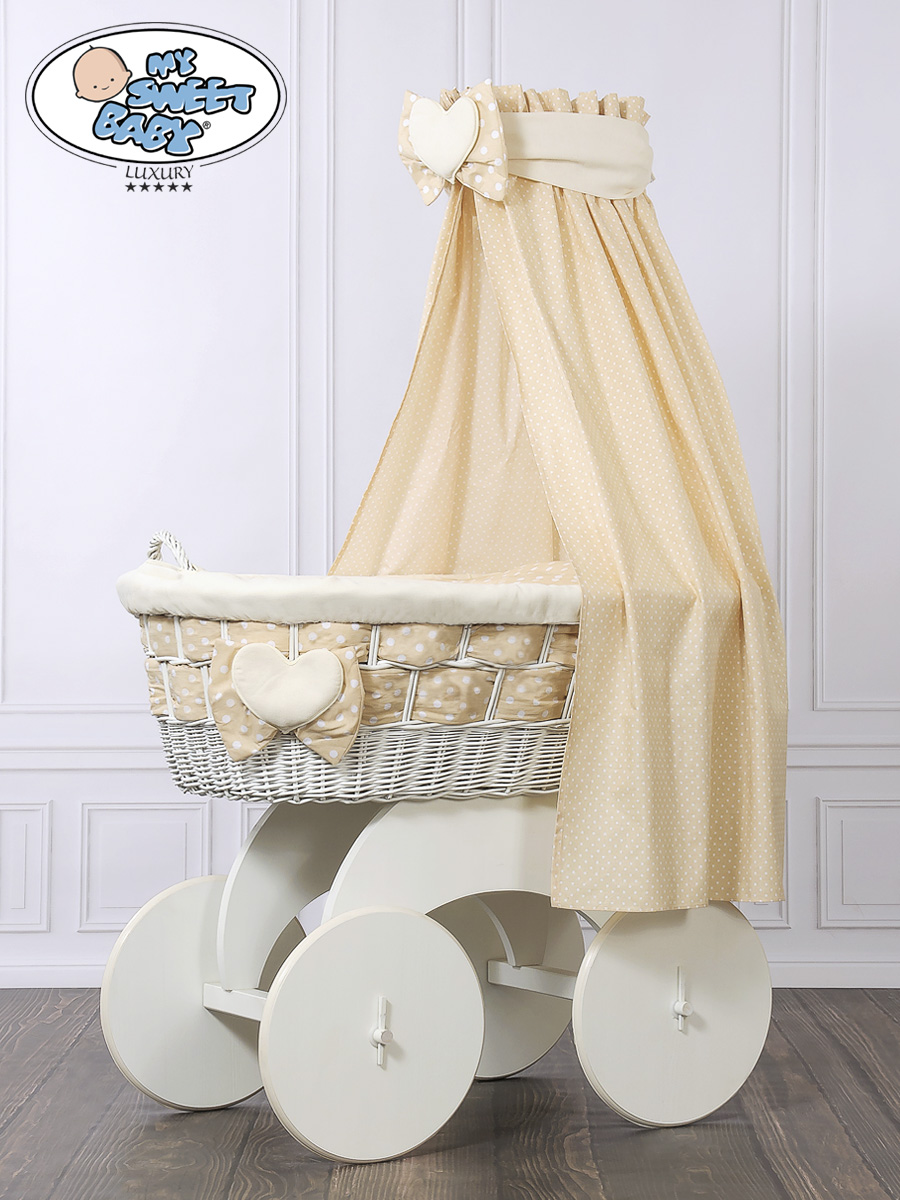 Hjemmeside » Kurvevugge » Babyvugge My Sweet Baby Luxury » Babyvugge med sengehimmel » Babyvugge med sengehimmel » Moseskurv til baby på hjul / Flettet kurv med sengehimmel Isabella