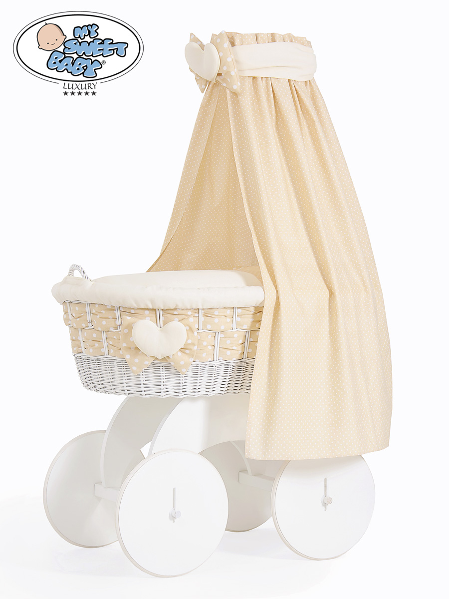 Moseskurv til baby på hjul / Flettet kurv med sengehimmel  Isabella