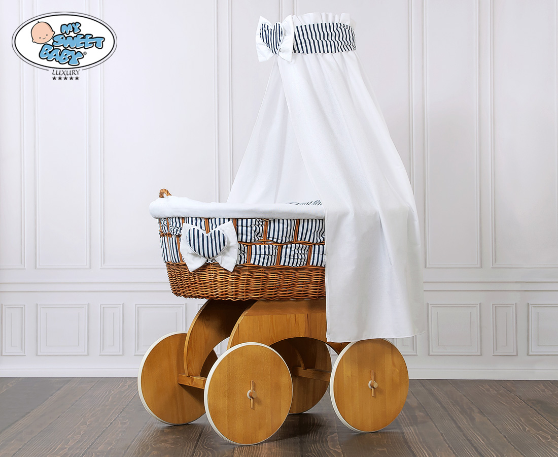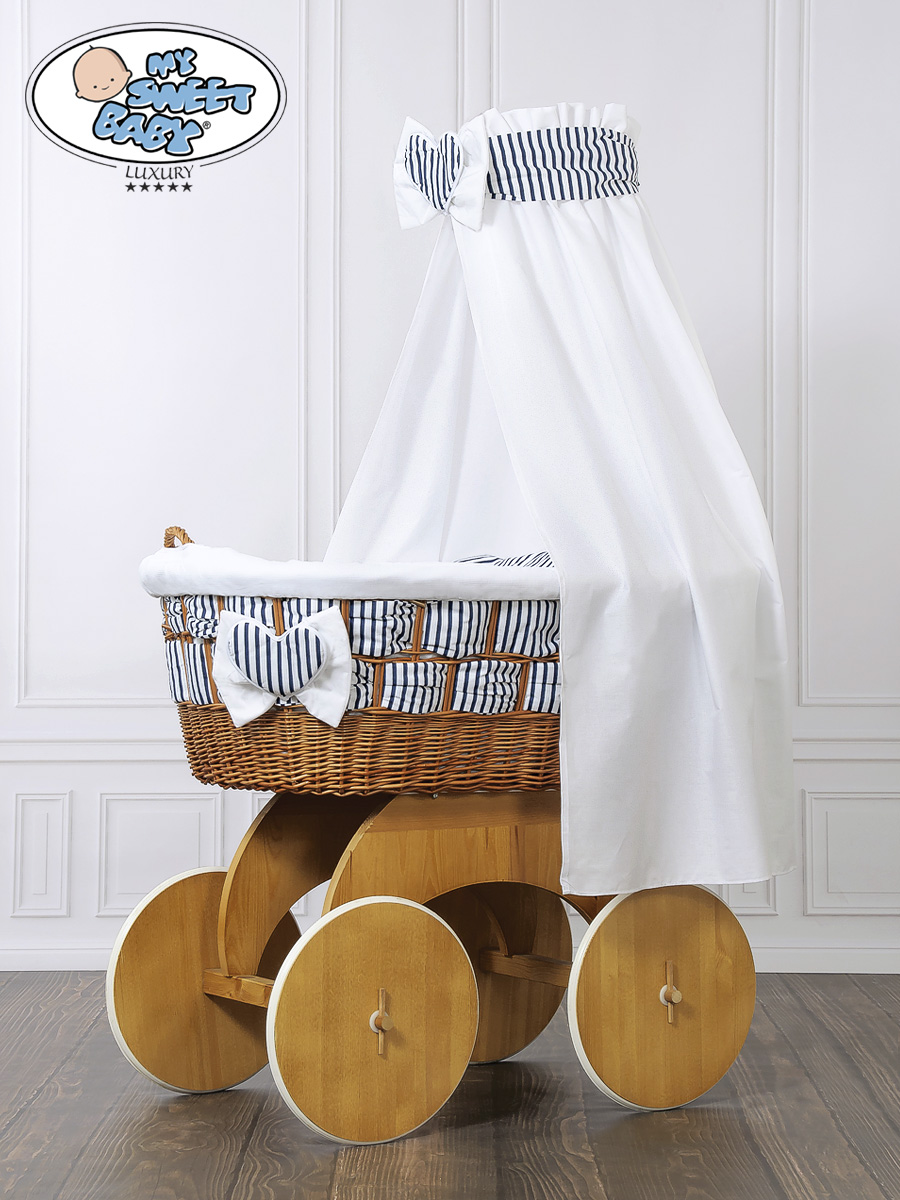 Hjemmeside » Kurvevugge » Babyvugge My Sweet Baby Luxury » Babyvugge med sengehimmel » Babyvugge med sengehimmel » Moseskurv til baby på hjul / Flettet kurv med sengehimmel Marina