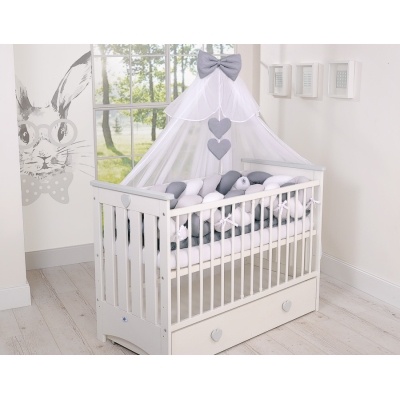 Myggenet der er universelt passende for senge 150x70cm og 120x60cm. Passer til alle babysenge, ser meget dekorativt ud.