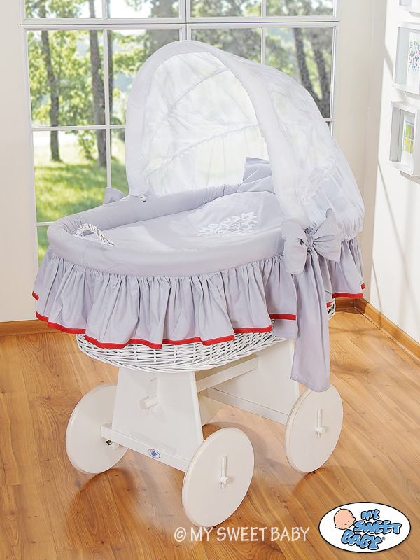 Hjemmeside » Kurvevugge » Flettet vugge med kaleche på hjul » Ekstra vuggesæt 4-delt » Nyt ekstra sengesæt af betræk for flettet babykurv Grå