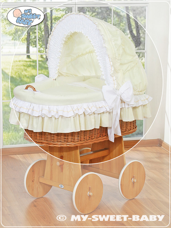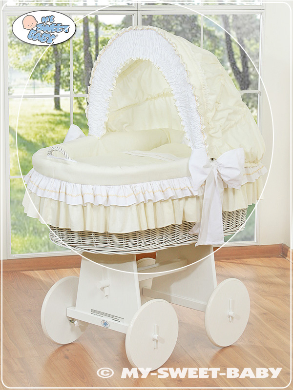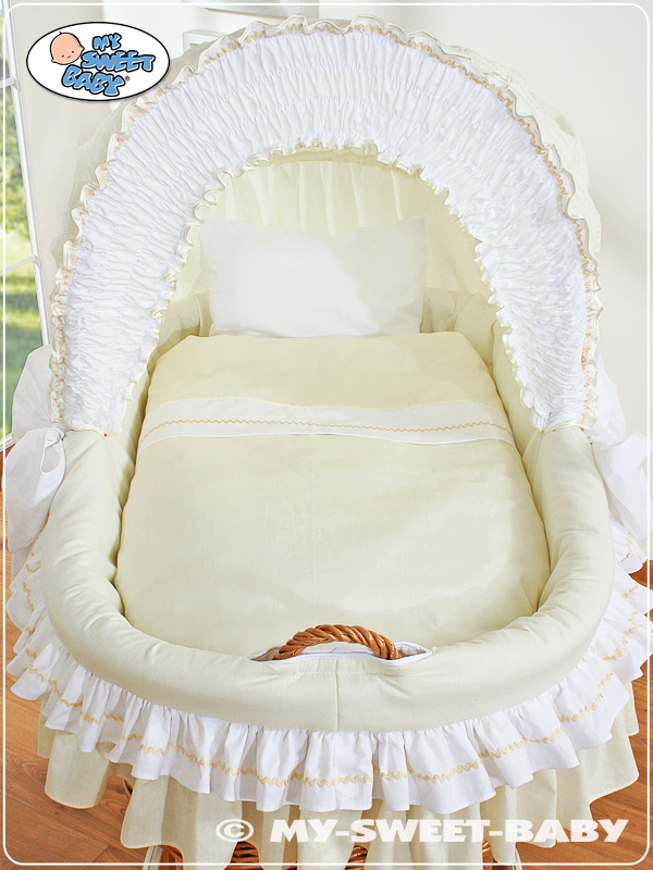 Hjemmeside » Kurvevugge » Flettet vugge med kaleche på hjul » Ekstra vuggesæt 4-delt » Nyt ekstra sengesæt af betræk for flettet babykurv