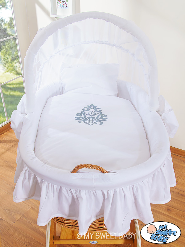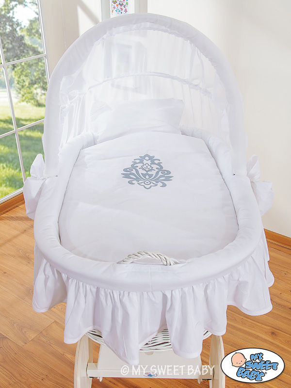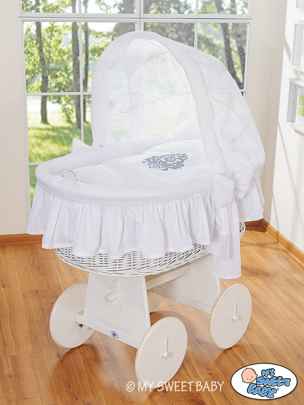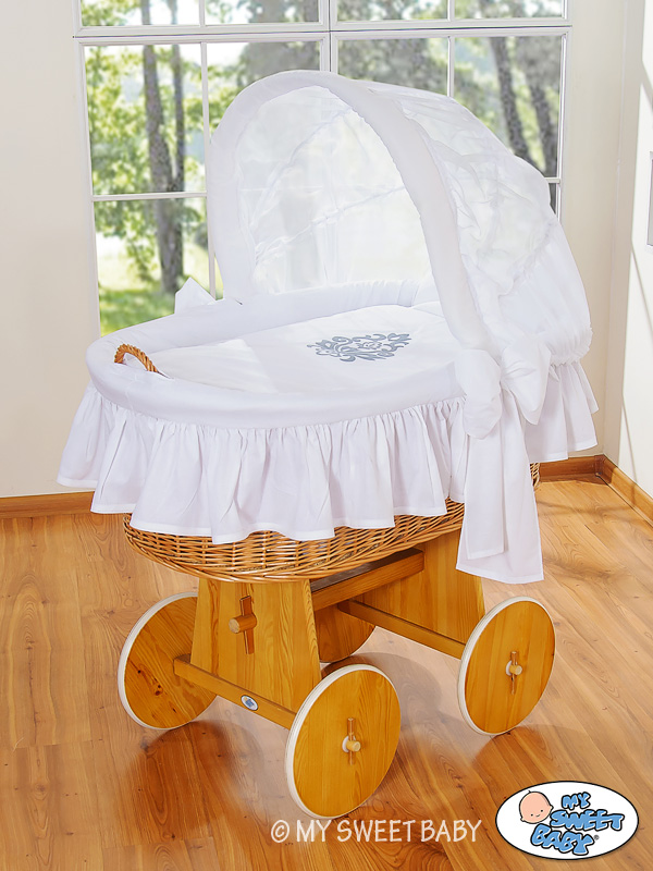 Hjemmeside » Kurvevugge » Flettet vugge med kaleche på hjul » Ekstra vuggesæt 4-delt » Nyt ekstra sengesæt af betræk for flettet babykurv