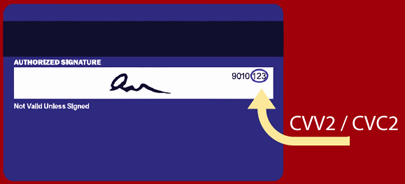 The card verification number CVV2 / CVC2 serves as a security feature on all credit cards. The usage of these verification numbers prevents the use of counterfeit or stolen credit cards.