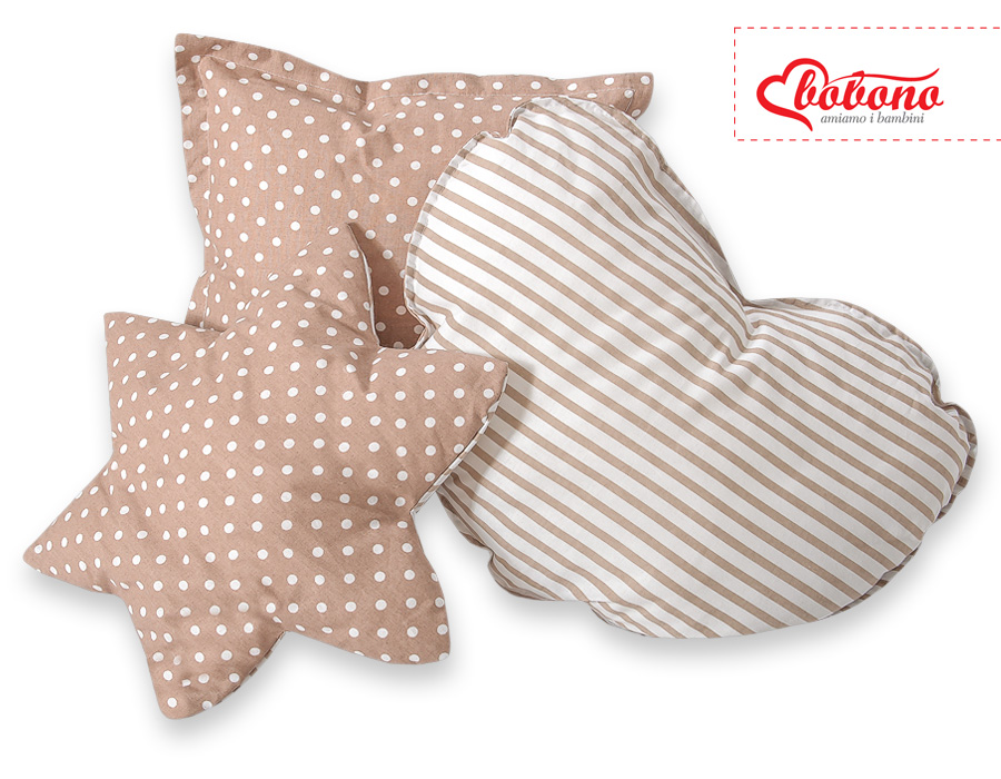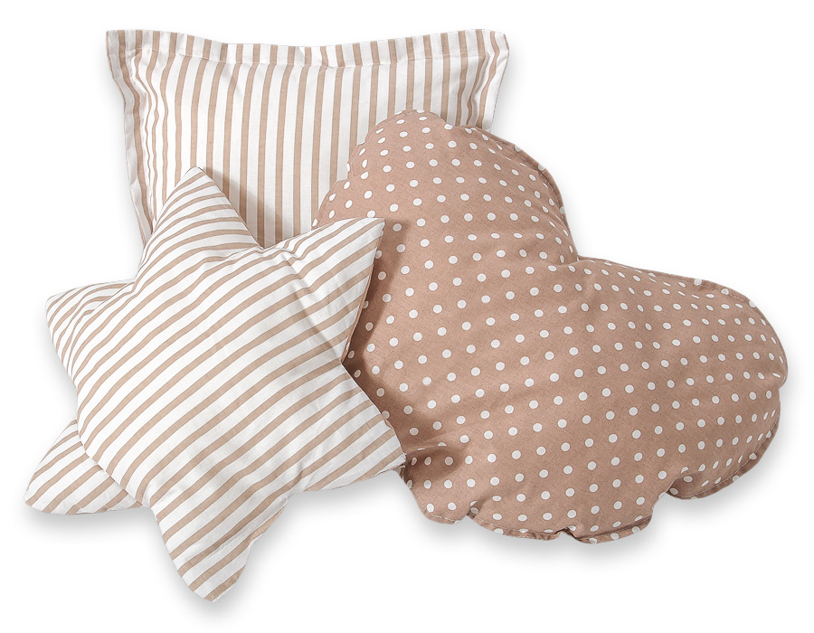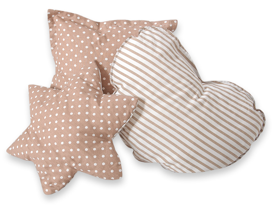 Hjemmeside » Legetøj & Hyggeligt Legetøj » Tipi telte » 3-delar pillow set » Pudesæt i 3 dele Beige Polkaprikker Striber