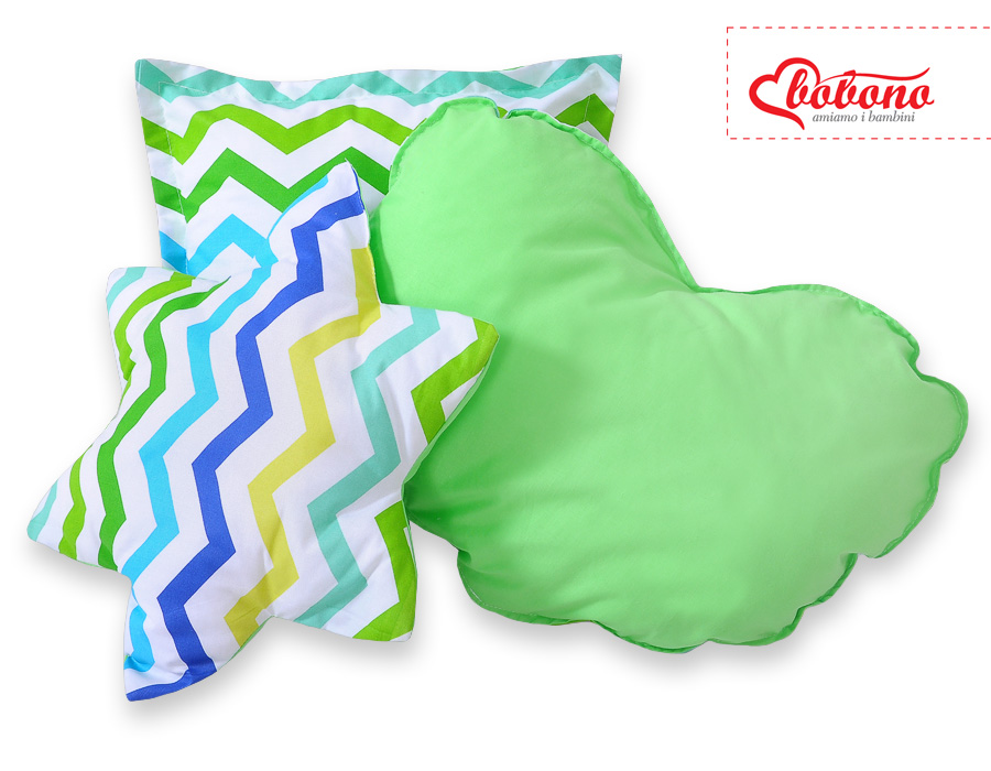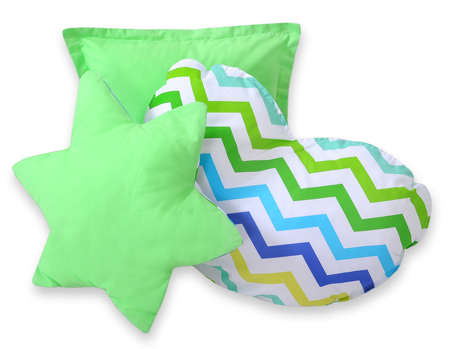 Hjemmeside » Legetøj & Hyggeligt Legetøj » Tipi telte » 3-delar pillow set » Pudesæt i 3 dele Grøn Blå Siksak