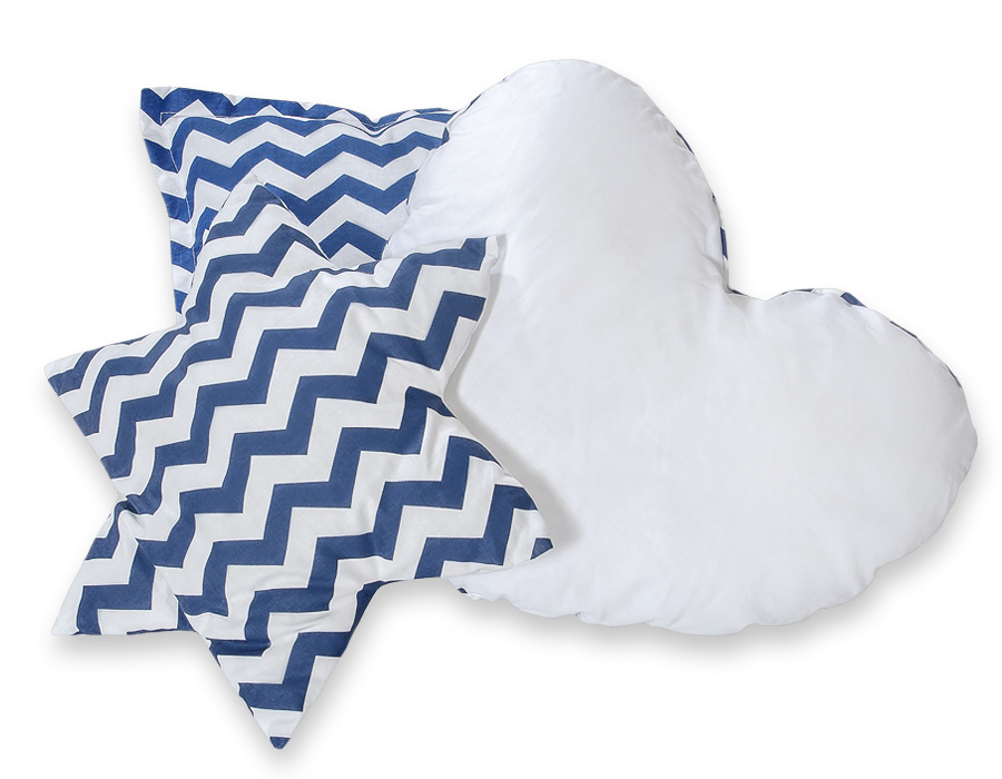 Hjemmeside » Legetøj & Hyggeligt Legetøj » Tipi telte » 3-delar pillow set » Pudesæt i 3 dele Mørk Blå Siksak