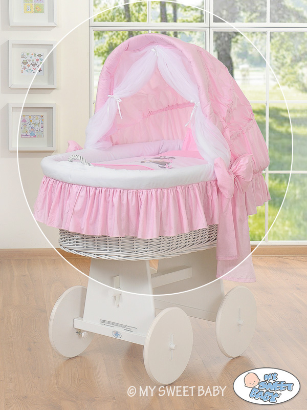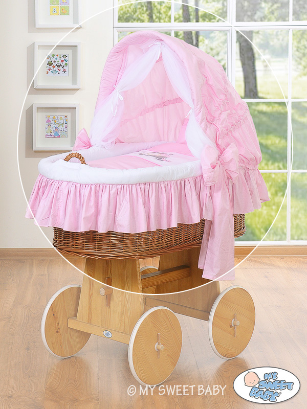 Hjemmeside » Kurvevugge » Flettet vugge med kaleche på hjul » Ekstra vuggesæt 4-delt » Sengebetræk til babykurv Lyserød Pink