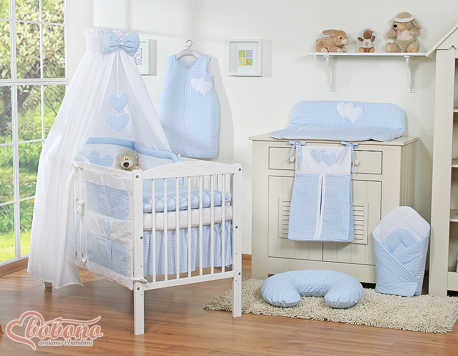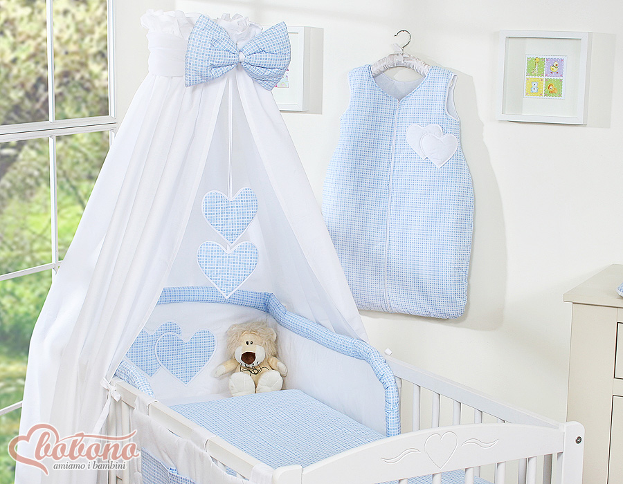 Hjemmeside » Sengesæt til baby » Sengesæt Kollektion HJERTER » Sengehimmel i Bomuld Hjerter » Sengegardiner af bomuld Hearts Blå Ternet Bomuld