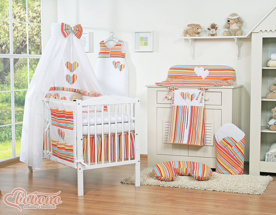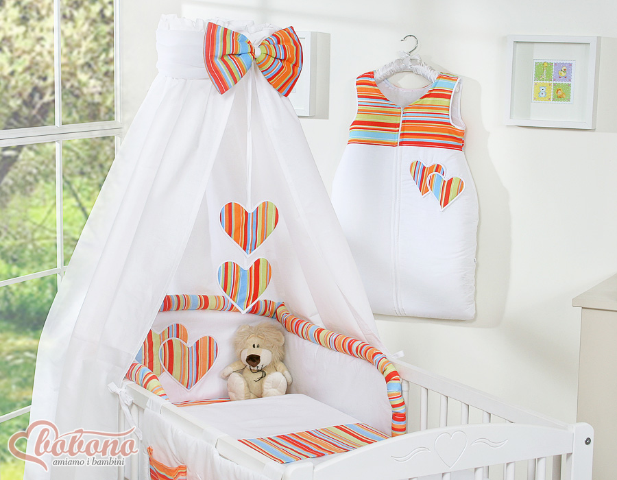 Hjemmeside » Sengesæt til baby » Sengesæt Kollektion HJERTER » Sengehimmel i Bomuld Hjerter » Sengegardiner af bomuld Hearts Orange Striber Bomuld
