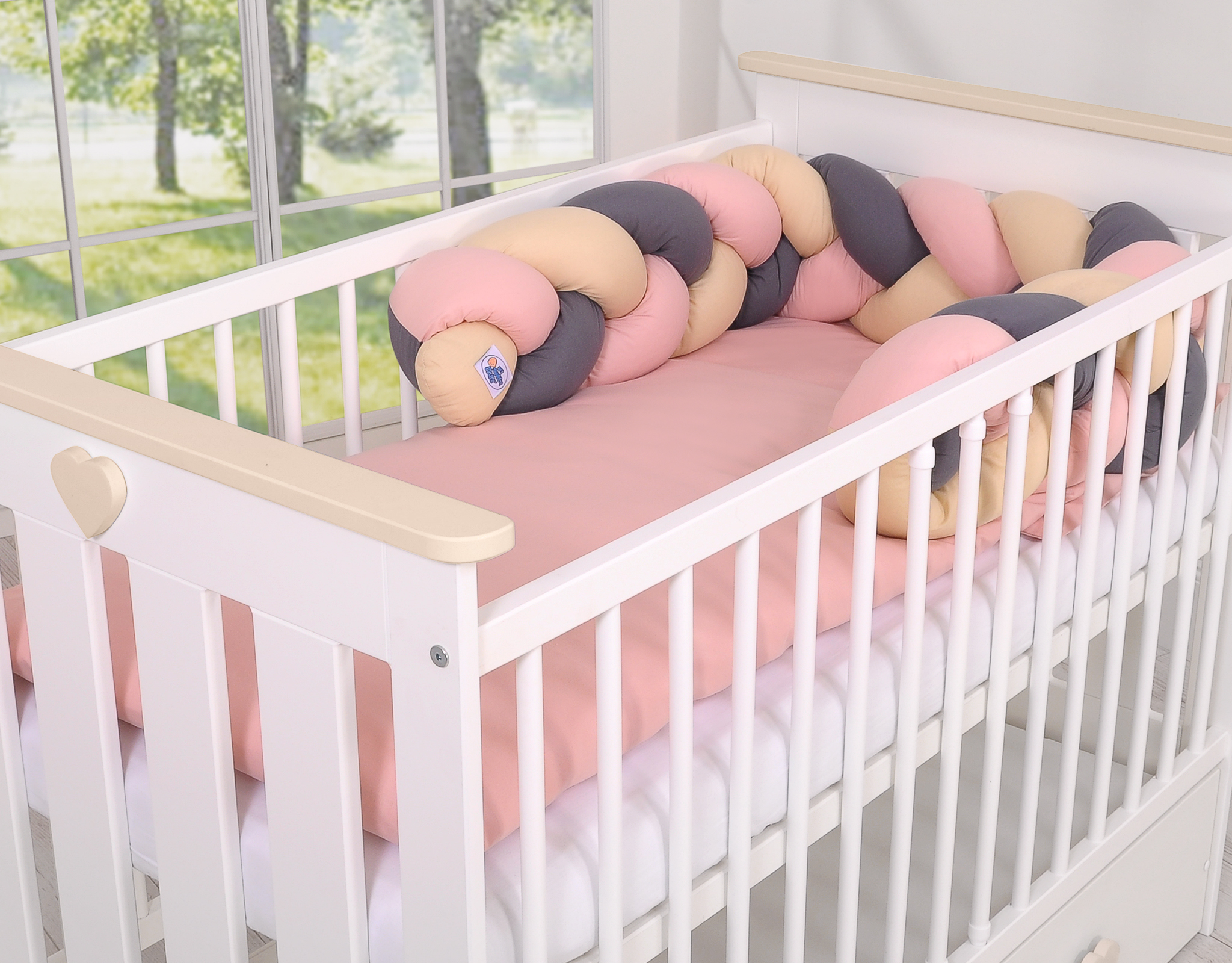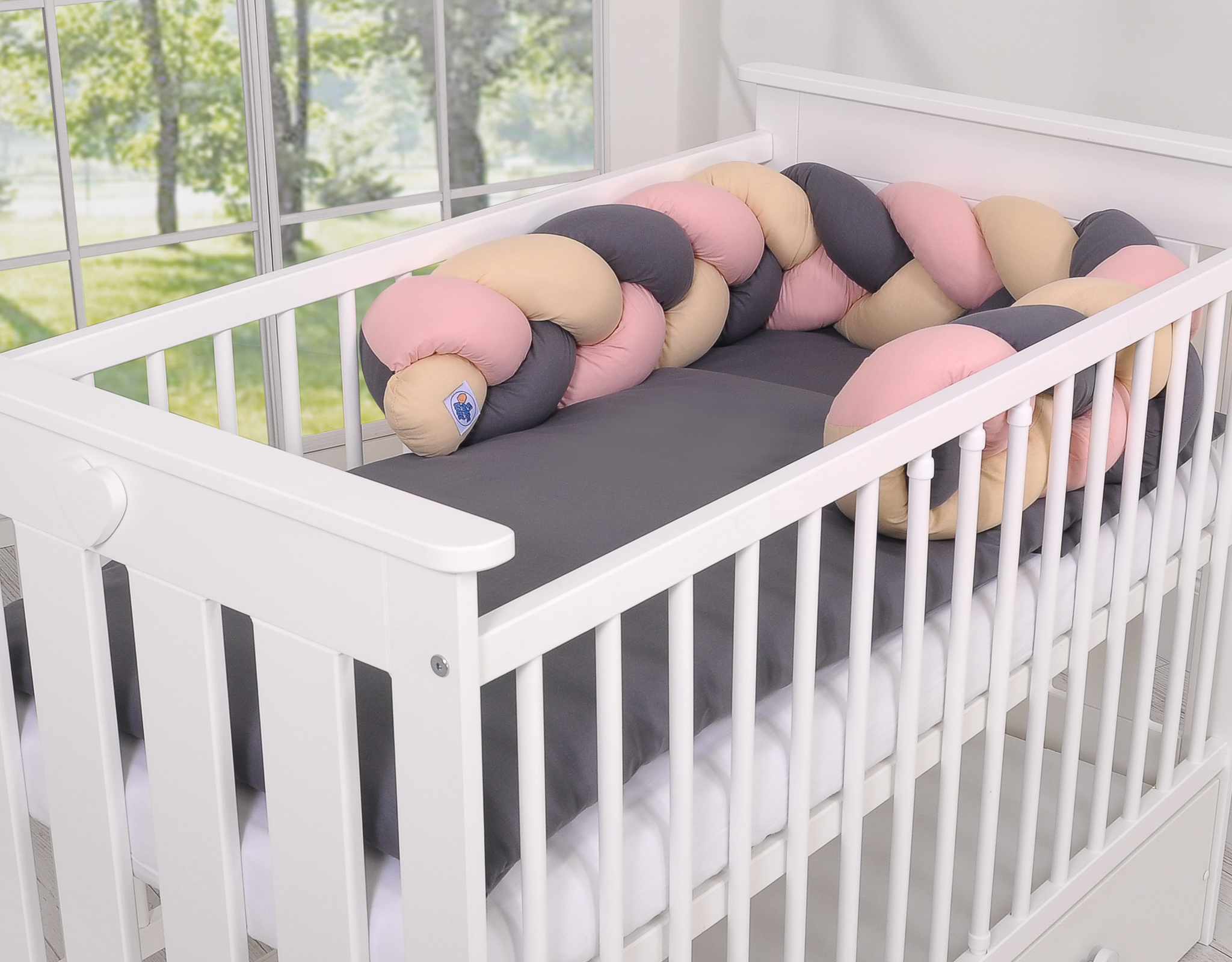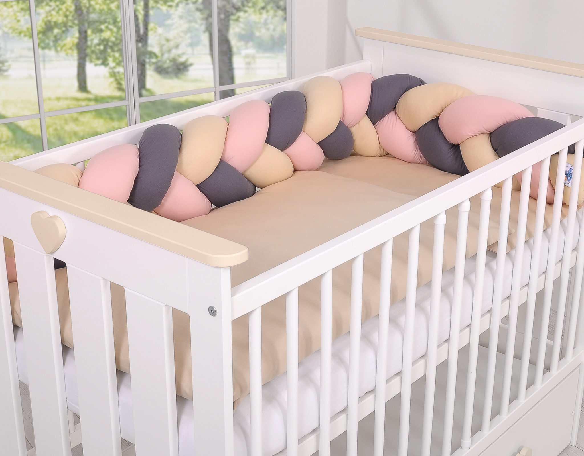 Sengeranden beskytter din babys hænder og fødder fra at sidde fast mellem tremmerne, så vel som beskytter babyens hoved fra at slå mod væggene i sengen. Med de inkluderede bomuldssløjfer kan randen hæftes til tremmerne.