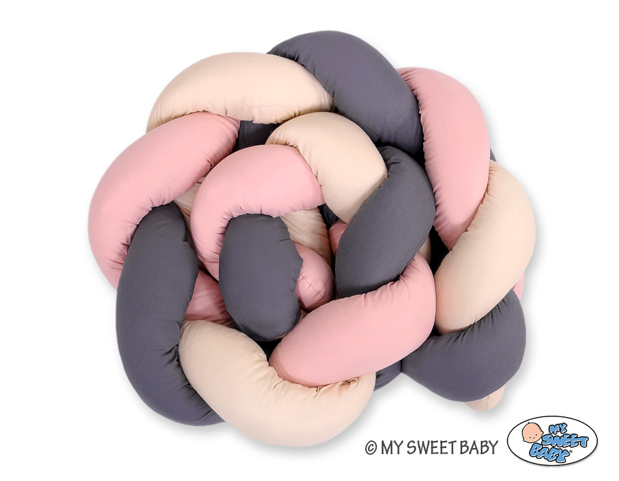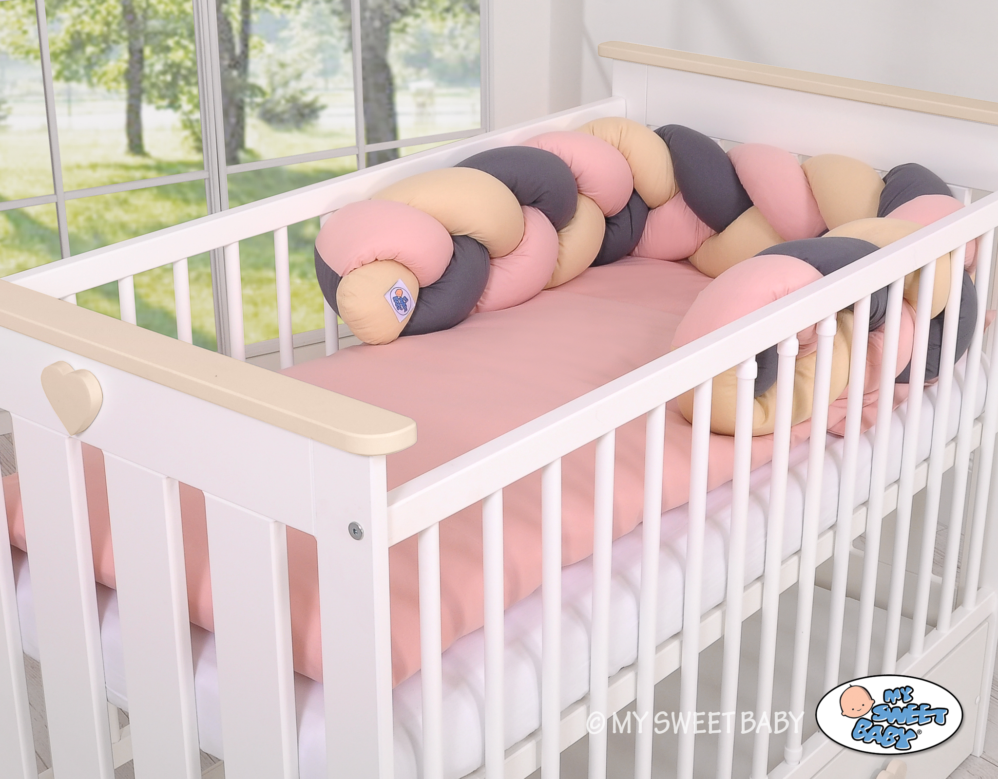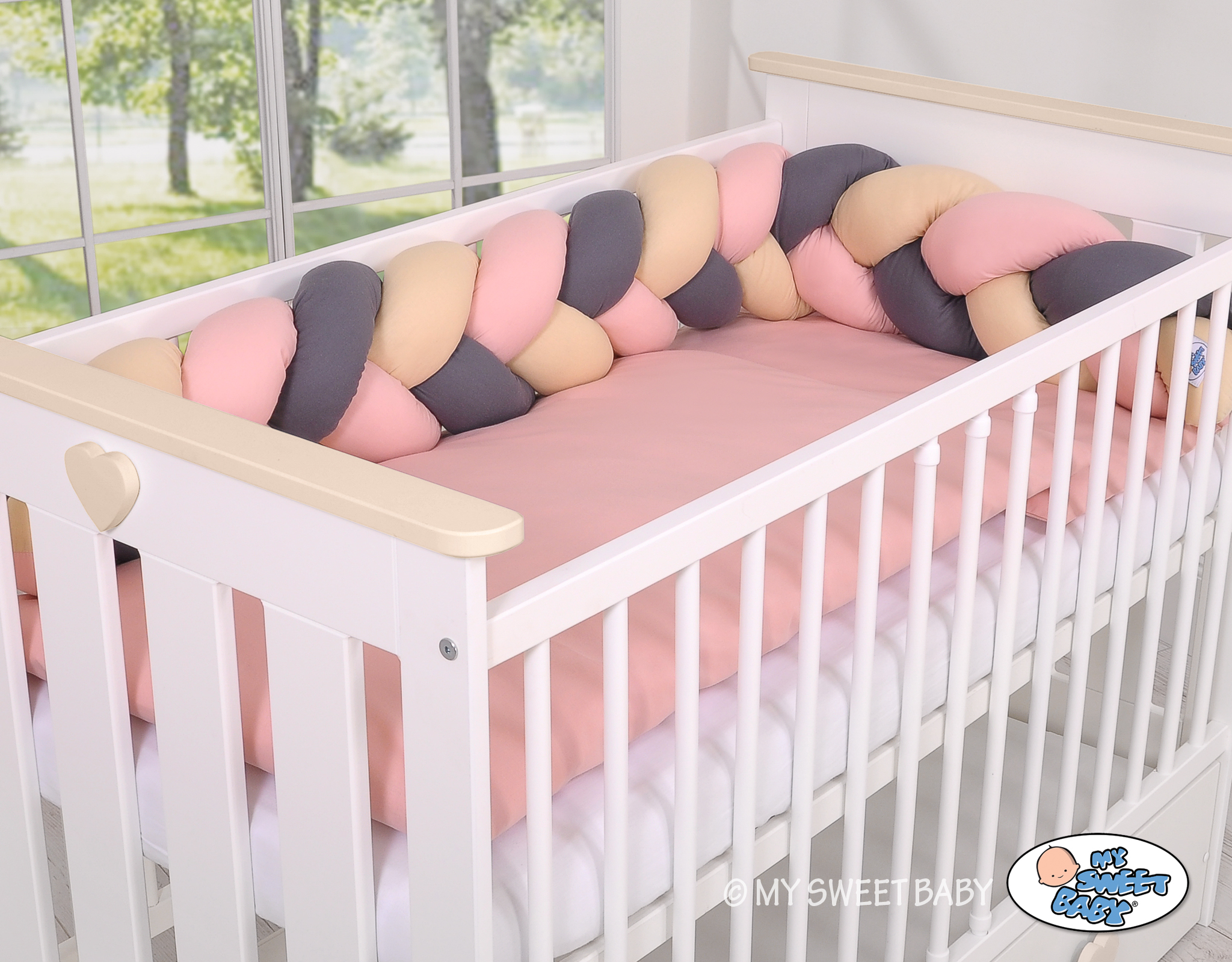 Hjemmeside » Flettet Kollektion » Flettet sengerand XXL » Sengerand flettet til tremmeseng 180cm Beige Antracit Støvet Pink