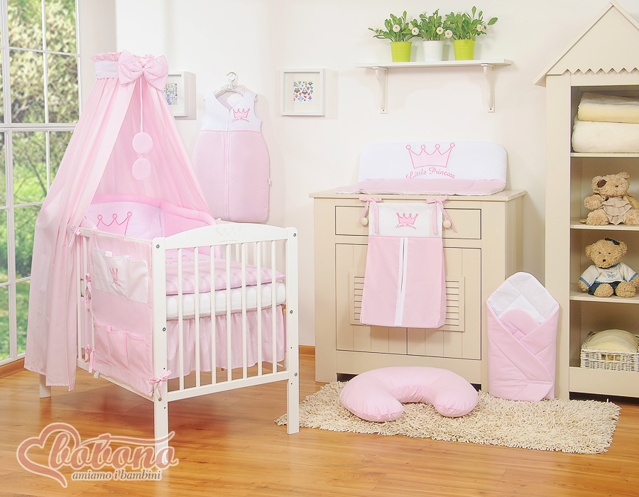 Hjemmeside » Sengesæt til baby » Sengesæt Kollektion LITTLE PRINCE / PRINCESS » Sengesæt til babyseng 120cm x 60cm » 11-delt sengesæt med Sengehimmel Little Prince/Princess » Sengesæt og sengehimmel til nyfødt Lyserød Pink