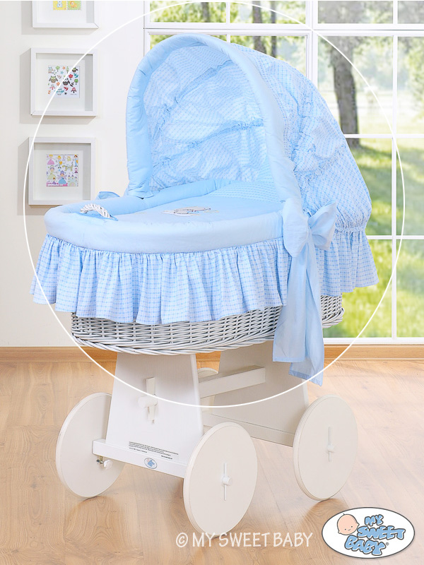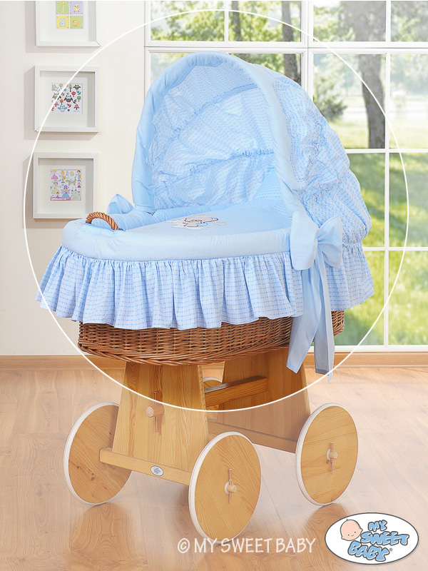 Hjemmeside » Kurvevugge » Flettet vugge med kaleche på hjul » Ekstra vuggesæt 4-delt » Sengesæt til moseskurv Blå