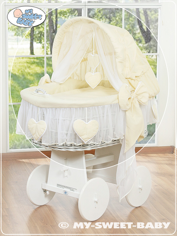 Hjemmeside » Kurvevugge » Flettet vugge med kaleche på hjul » Ekstra vuggesæt 4-delt » Sengesæt til moseskurv