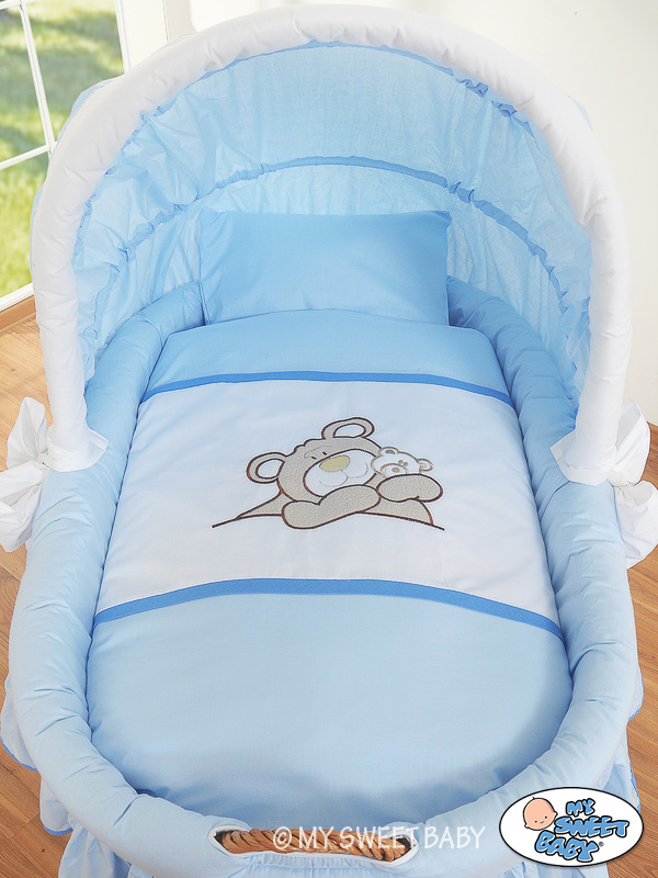 Hjemmeside » Kurvevugge » Flettet vugge med kaleche på hjul » Ekstra vuggesæt 4-delt » Sengesæt til moseskurv