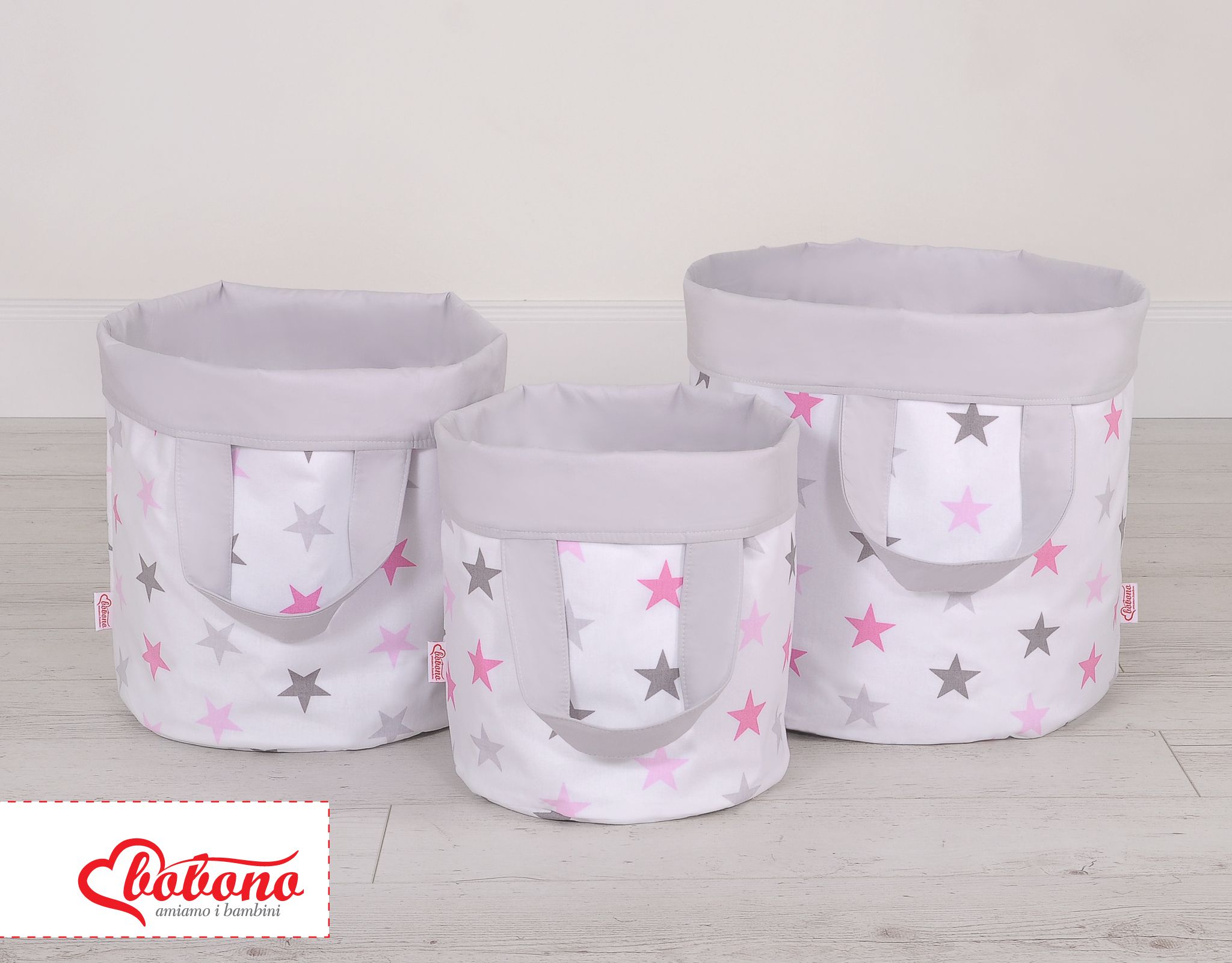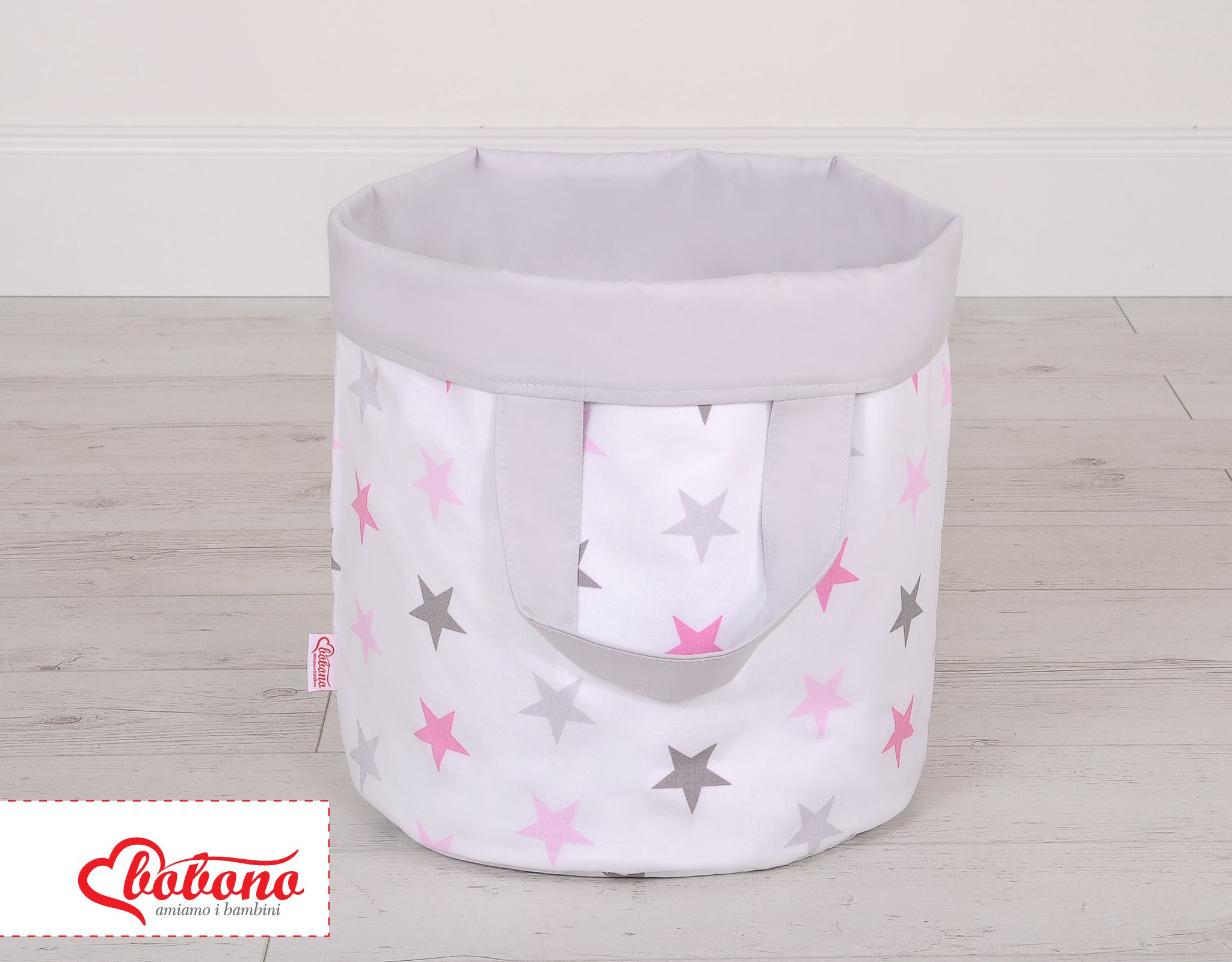 Hjemmeside » Legetøj & Hyggeligt Legetøj » Dobbeltsidet legetøjskurv » Dobbeltsidet legetøjskurv L » Stofkurv til legetøj L Lyserød Grå Pink Stjerner