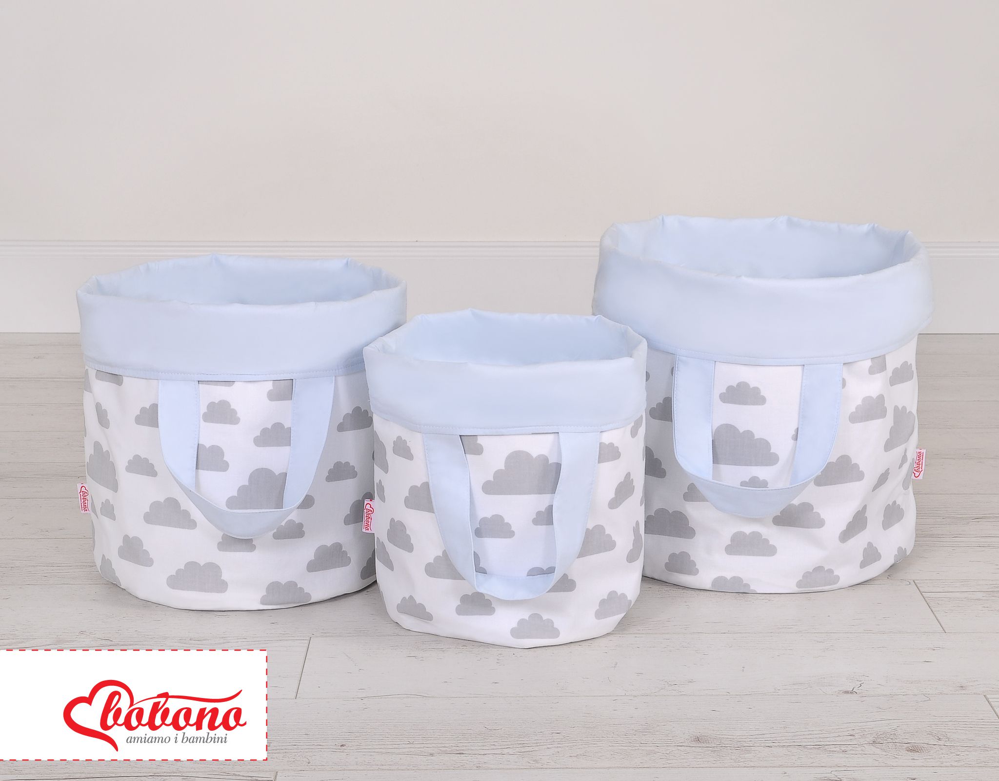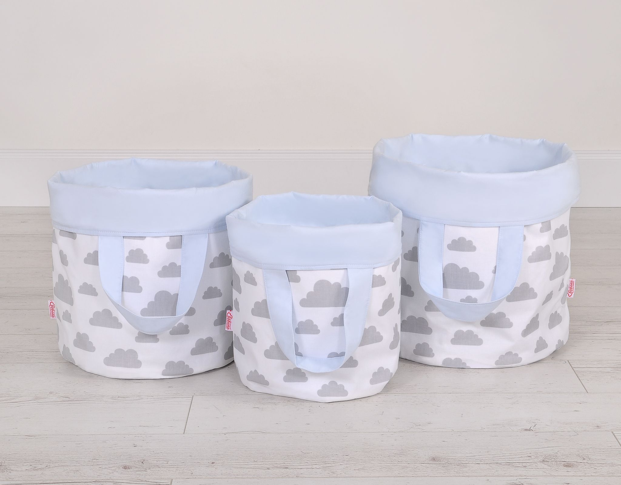 Hjemmeside » Legetøj & Hyggeligt Legetøj » Dobbeltsidet legetøjskurv » Dobbeltsidet legetøjskurv M » Stofkurv til legetøj M Grå Blå Skyer