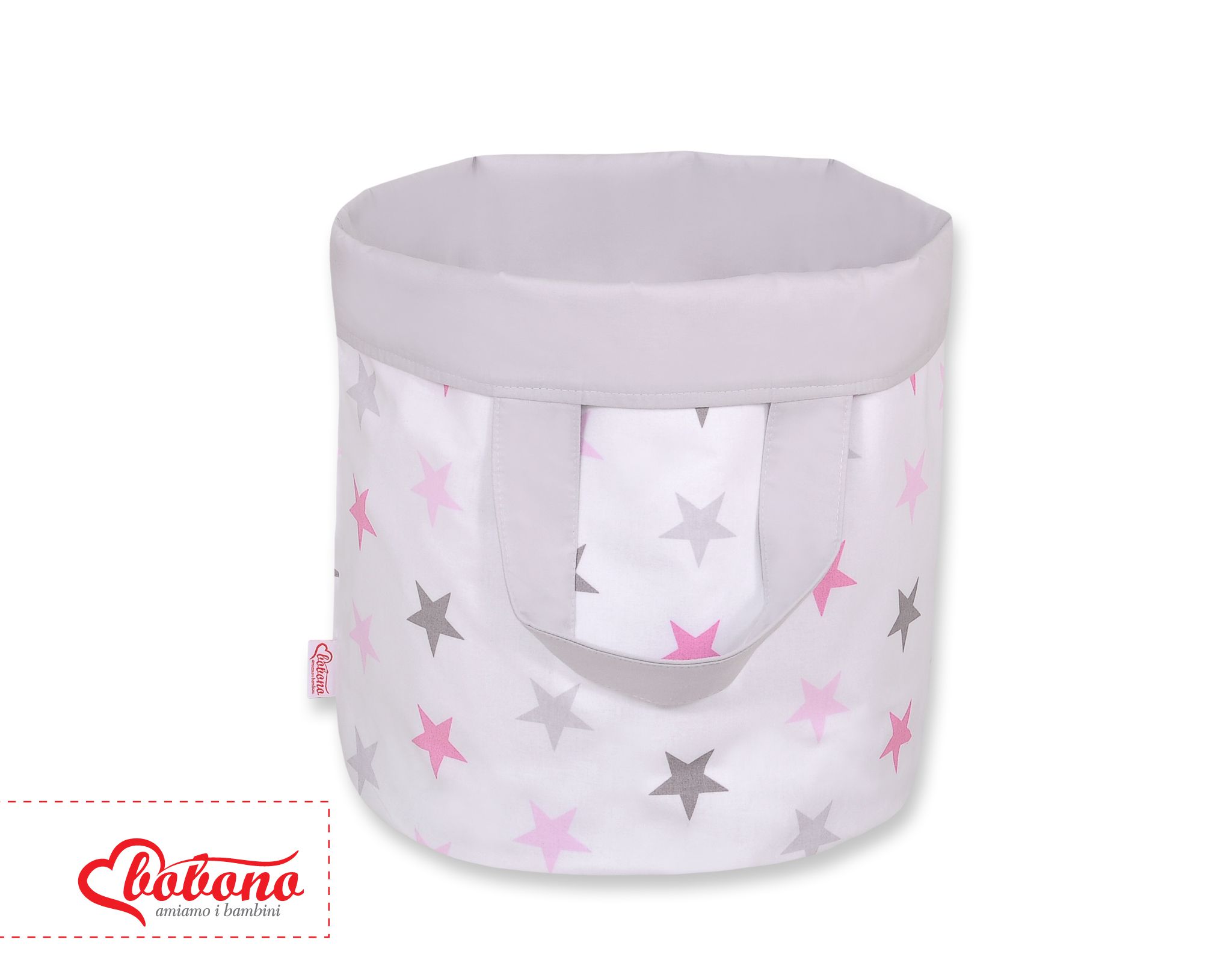 Hjemmeside » Legetøj & Hyggeligt Legetøj » Dobbeltsidet legetøjskurv » Dobbeltsidet legetøjskurv M » Stofkurv til legetøj M Lyserød Grå Pink Stjerner