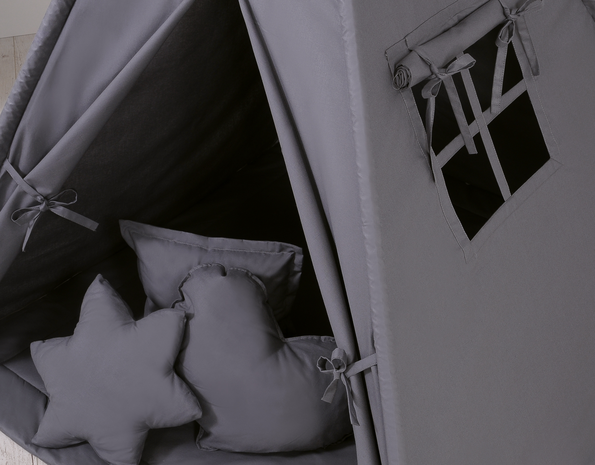 Teltsæt Tipi Telt Børn med legetæppe + puder sæt   Antracit