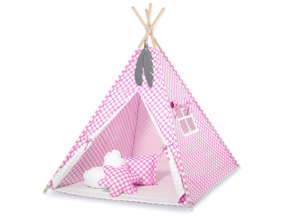 Teltsæt Tipi Telt Børn med legetæppe + puder sæt   Lyserød Pink