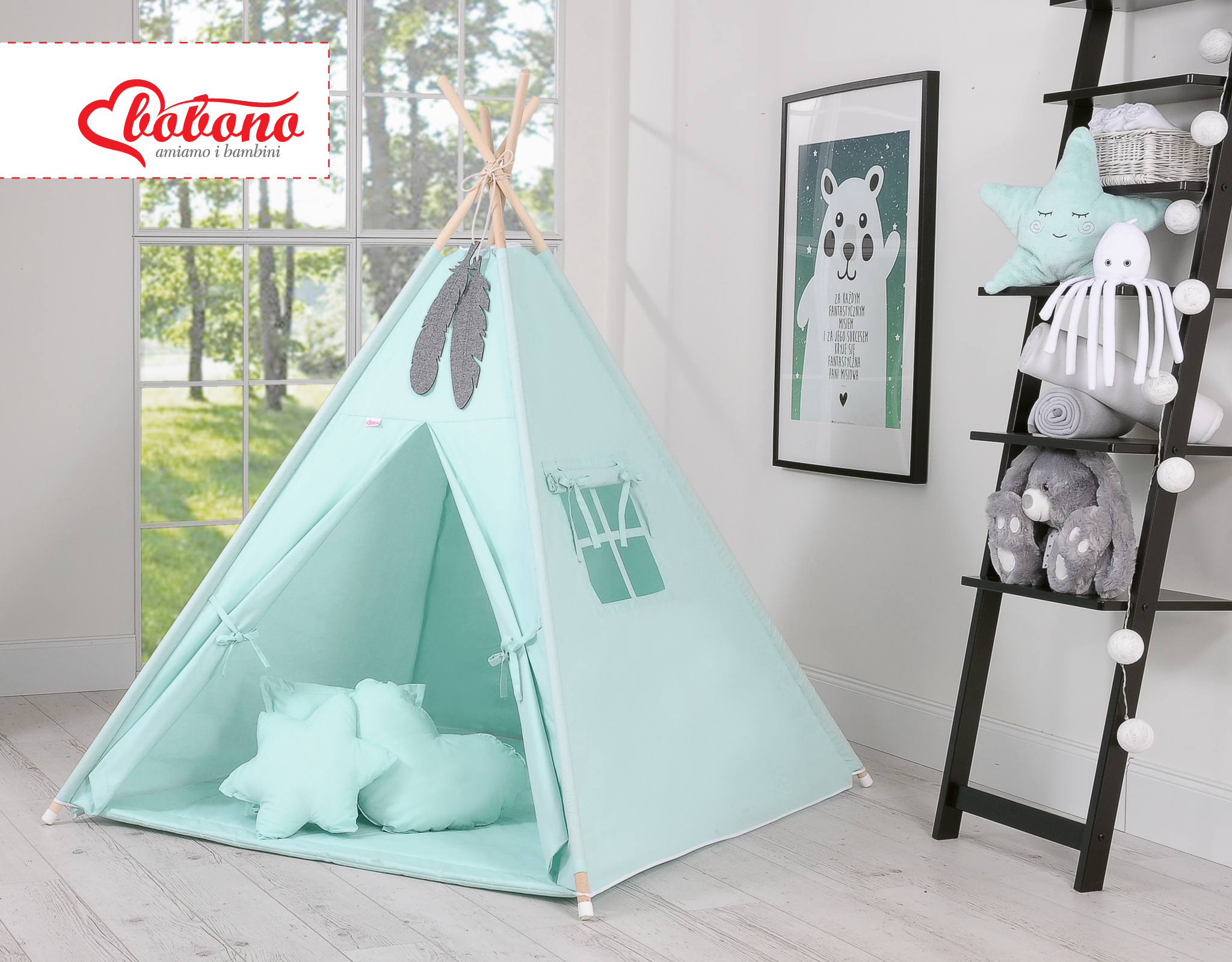 Hjemmeside » Legetøj & Hyggeligt Legetøj » Tipi telte » Mega Sæt: Tipi Telt med Legetæppe og Puder » Teltsæt Tipi Telt Børn med legetæppe + puder sæt Mint