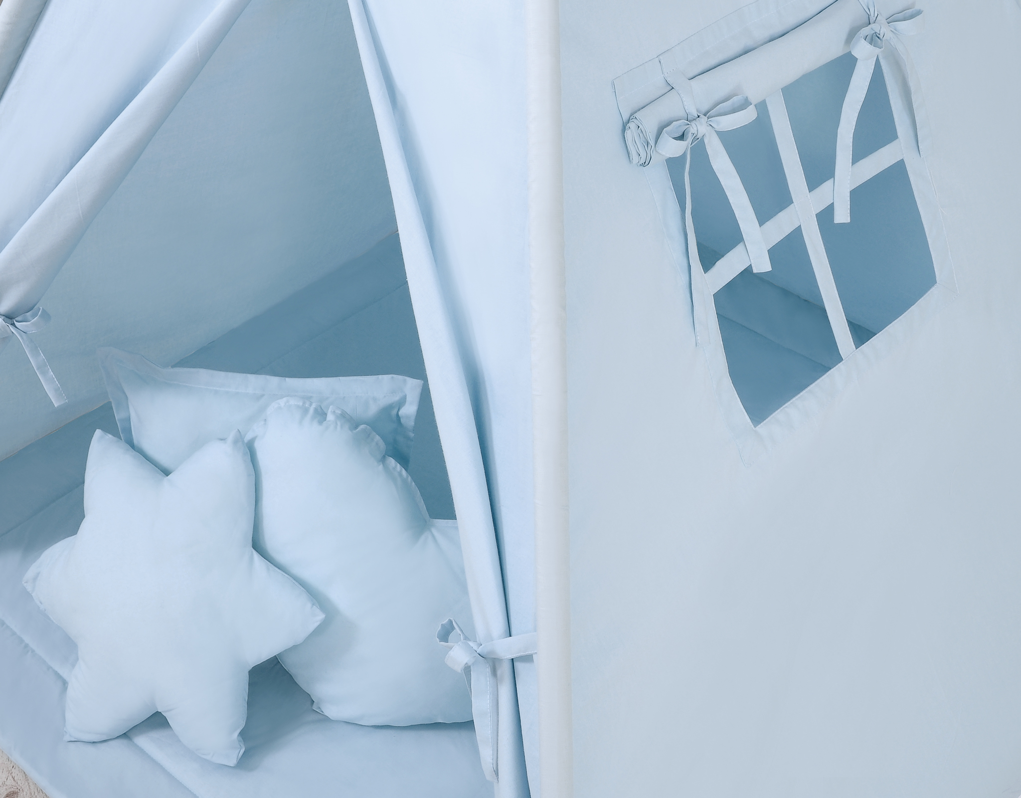 Hjemmeside » Legetøj & Hyggeligt Legetøj » Tipi telte » Mega Sæt: Tipi Telt med Legetæppe og Puder » Tipi sæt til børn med legetæppe og puder Blå