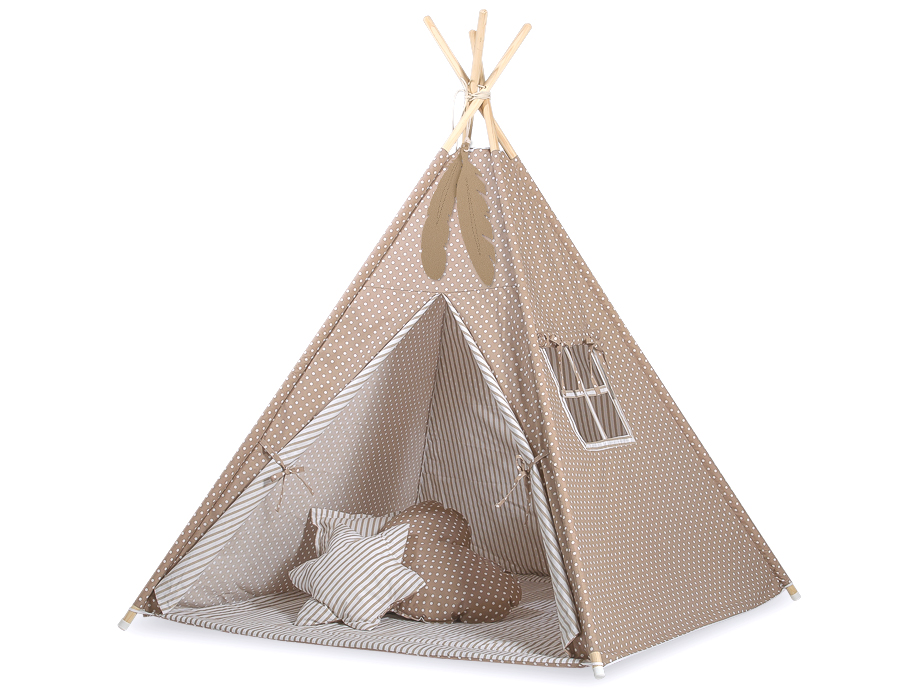 Denne tipi er den perfekte tilføjelse til et hvert børneværelse, babyværelse, eller legerum og fantastisk som fødselsdagsgave, skjul, læsekro, strandtelt, piknik, fest, eller kulisse til fotografering. Din tipi vil tilbyde uendelige timer med fantasifuld leg for dine små og har plads nok til et par søde børn! Vi håber din tipi vil skabe varende magiske barndomsminder.