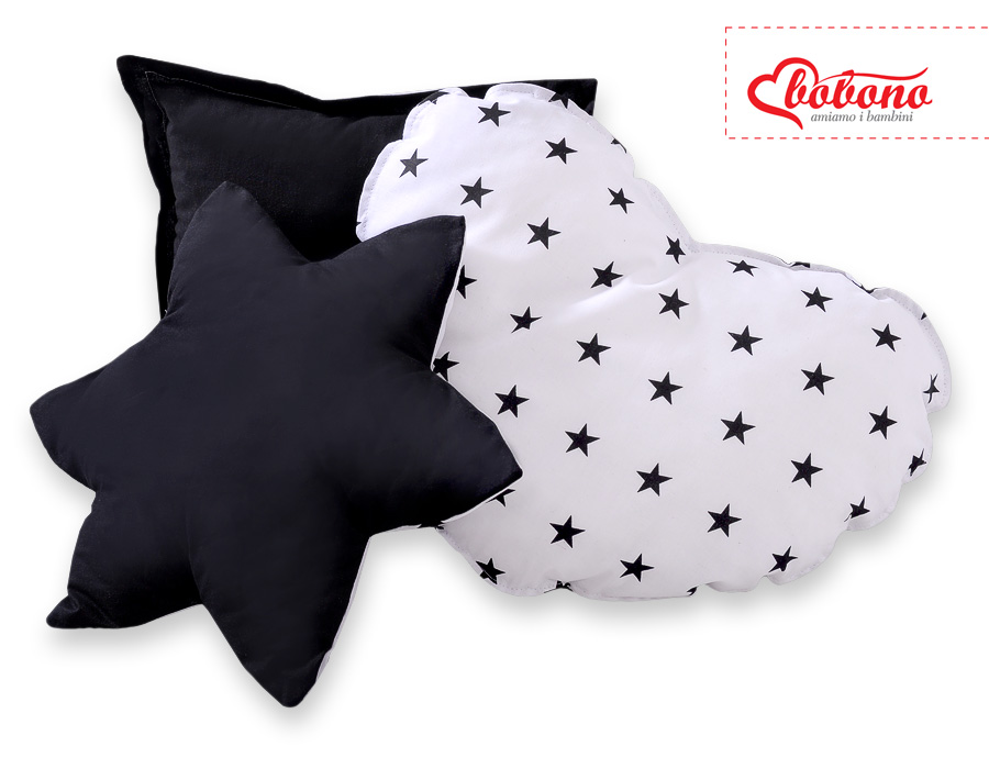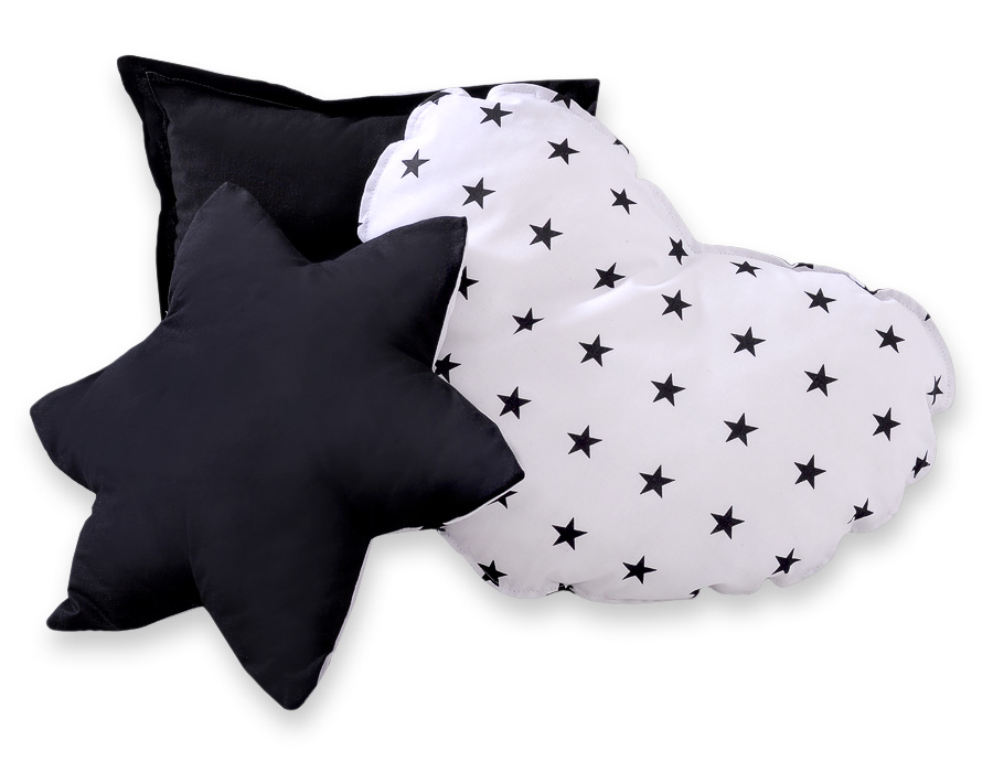 Bløde, fluffy puder, der matcher teltfarven. Hver pude i forskellig original, dekorativ form. Puder er tofarvede - hver side lavet af forskelligt materiale. Også perfekt som en farverig dekoration til børneværelset.