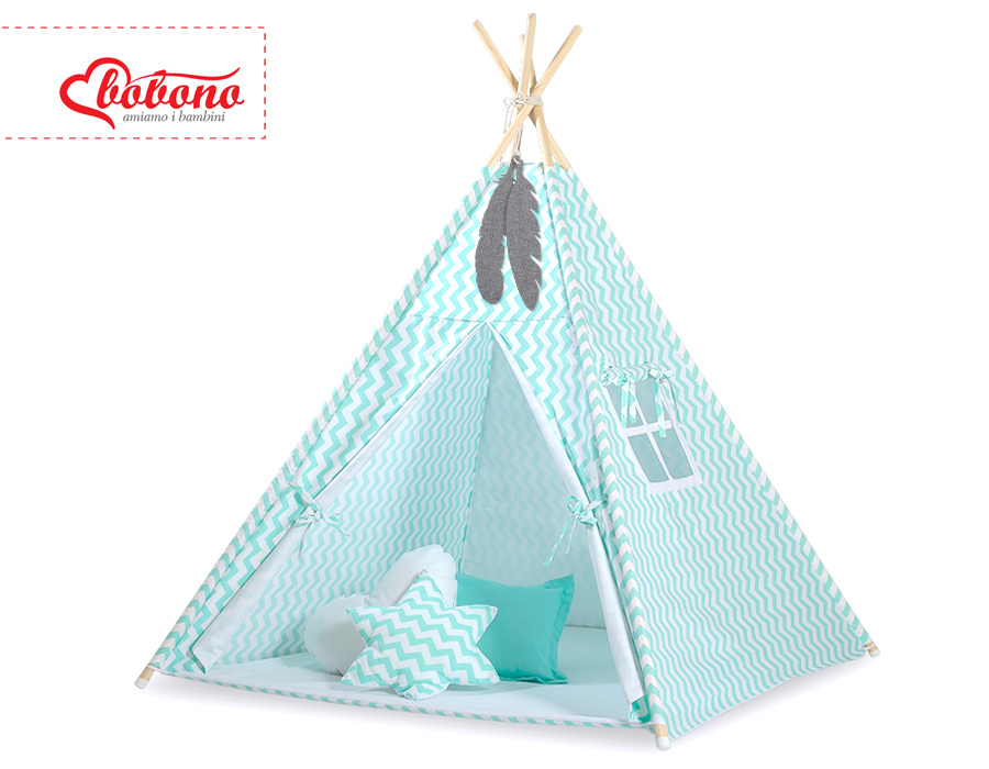 Hjemmeside » Legetøj & Hyggeligt Legetøj » Tipi telte » Mini sæt Tipi Telt Børn med legetæppe » Tipi telt sæt til børn med legetæppe Mint Siksak