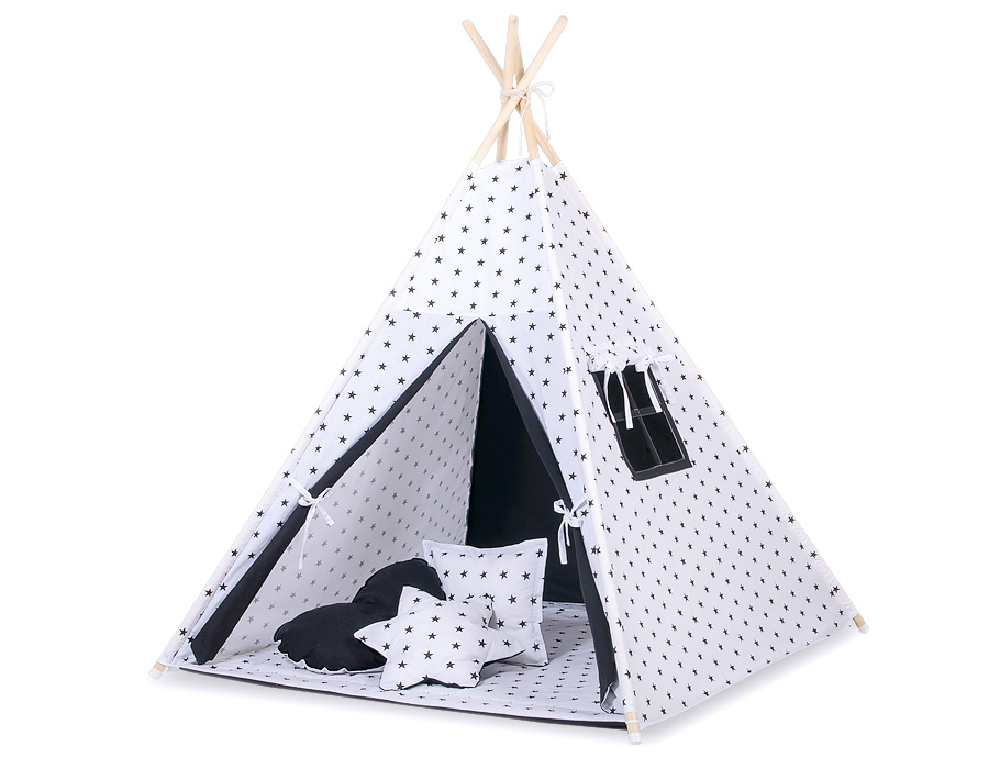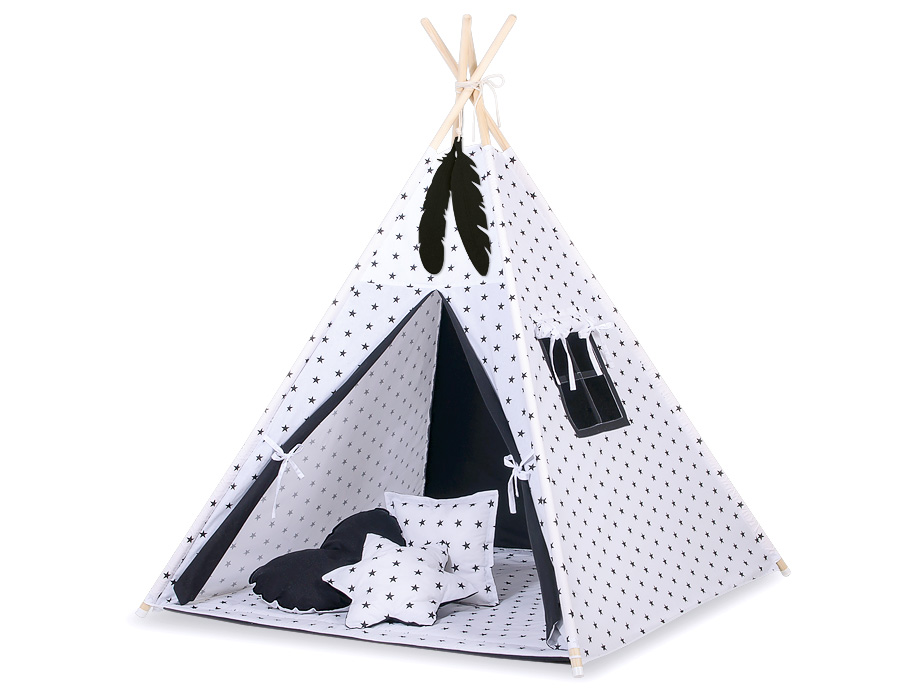 Hjemmeside » Legetøj & Hyggeligt Legetøj » Tipi telte » Mini sæt Tipi Telt Børn med legetæppe » Tipi telt sæt til børn med legetæppe Sort