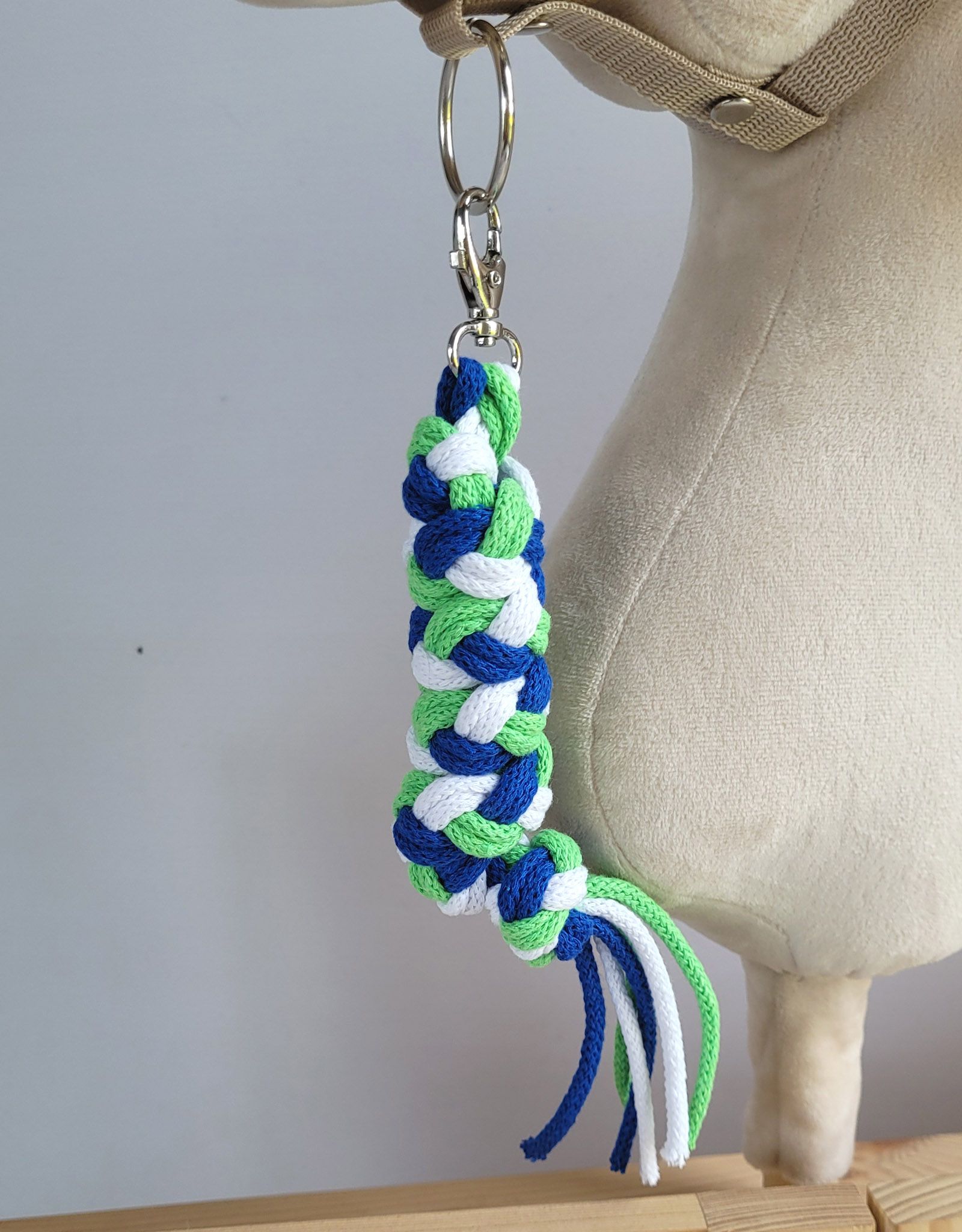 Ein hochwertiger, handgefertigter weicher Halfter für Hobby Horse. Der Halter ist sorgfältig aus einer starken, doppelt geflochtenen Baumwollschnur mit einem Durchmesser von 5 mm geflochten. Der Anbindestrick ist angenehm im Gebrauch, verursacht keine Schürfwunden und ist nicht allergen.