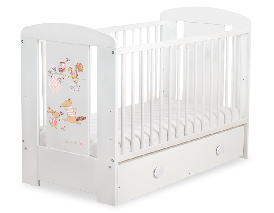 Hjemmeside » Tremmesenge 120x60 cm » Tremmesenge med Skuffe 120x60cm » Børnesenge med tremmer med Skuffe Happy » Tremmeseng med Skuffe til baby Happy MAXI