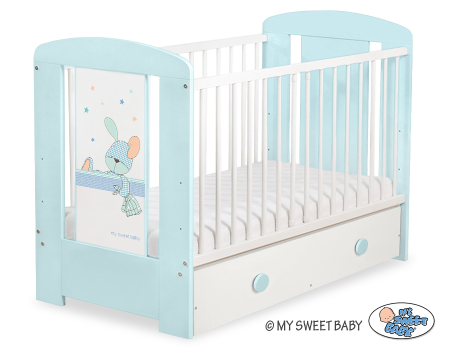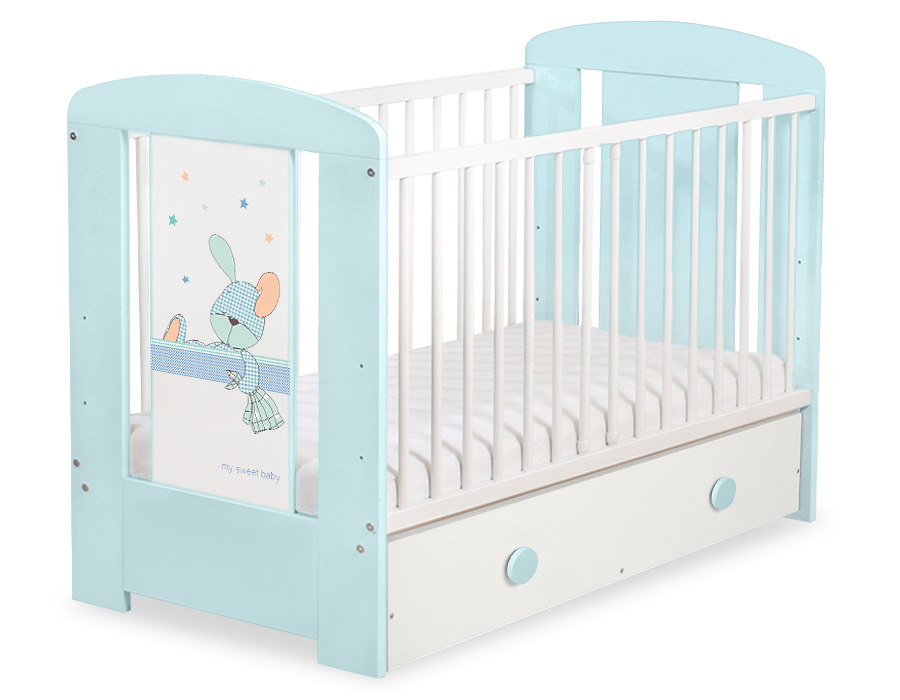 Hjemmeside » Tremmesenge 120x60 cm » Tremmesenge med Skuffe 120x60cm » Børnesenge med tremmer med Skuffe Happy » Tremmeseng med Skuffe til baby Happy MAXI