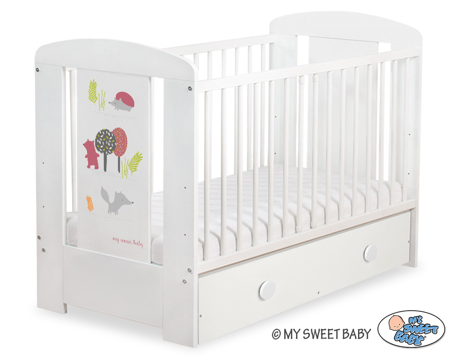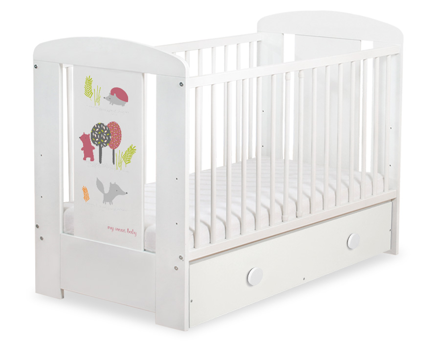 Hjemmeside » Tremmesenge 120x60 cm » Tremmesenge med Skuffe 120x60cm » Børnesenge med tremmer med Skuffe Happy » Tremmeseng med Skuffe til baby Happy MAXI Skov