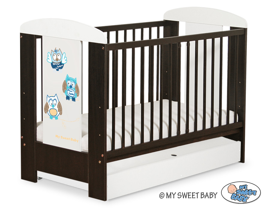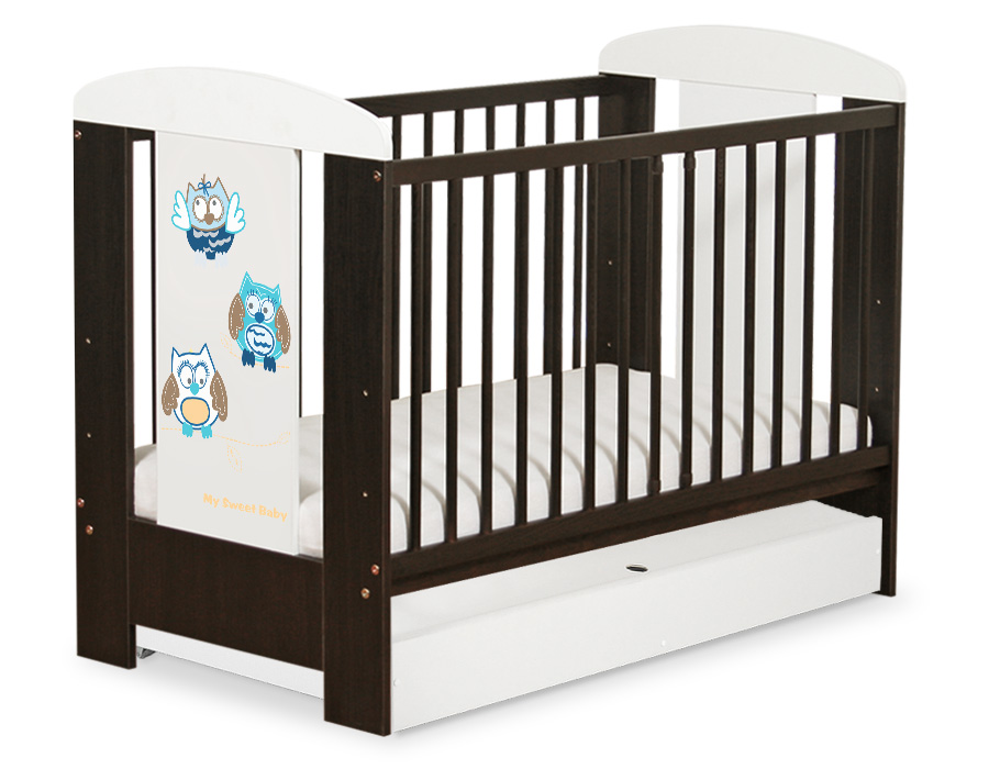 Hjemmeside » Tremmesenge 120x60 cm » Tremmesenge med Skuffe 120x60cm » Babysenge 120x60cm med Skuffe Munter Ugler » Tremmeseng med Skuffe til baby Munter Ugler STANDARD